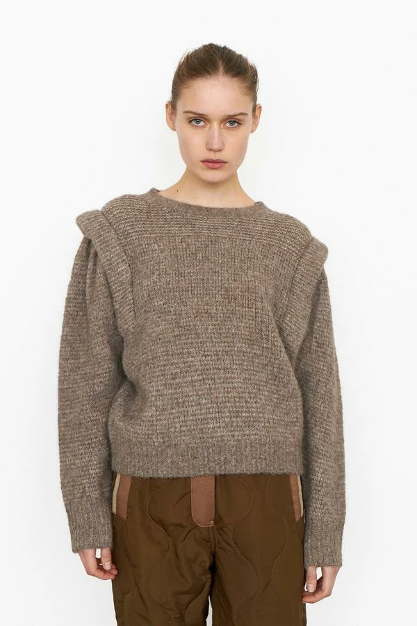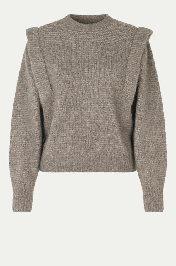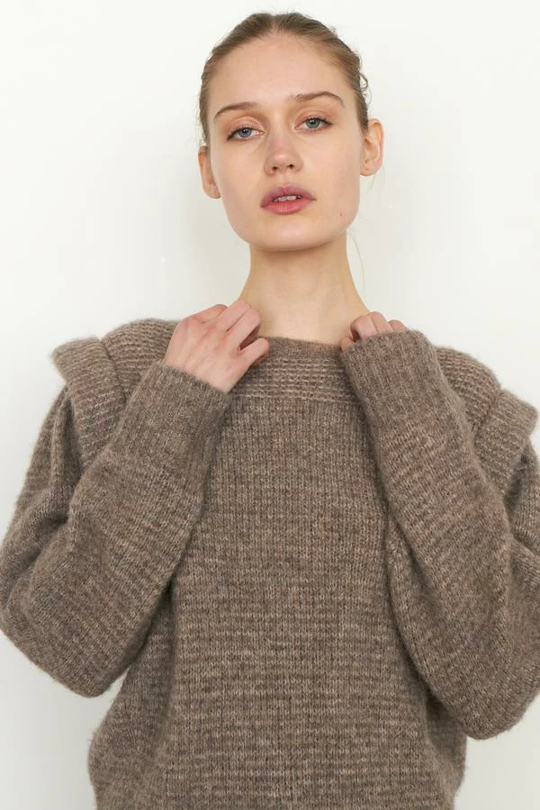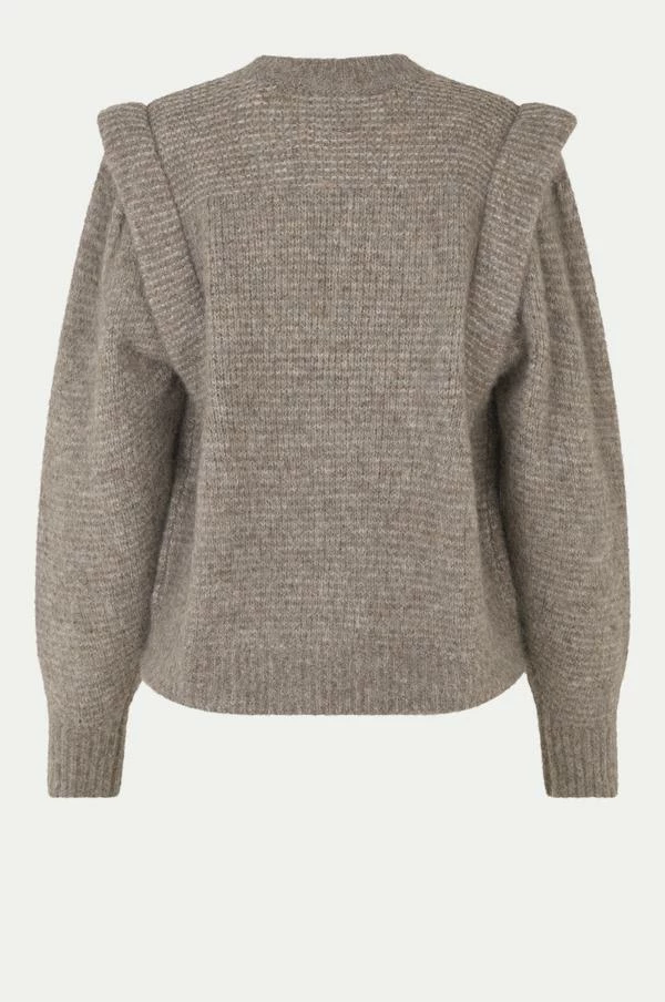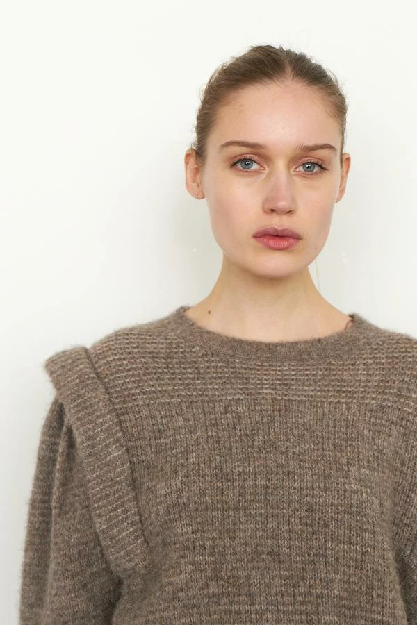 Second Female statement knit made in a soft, alpaca and wool mix quality. The knit has fine ribbing around the rounded neckline, cuffs and hemline. It has wide, unique shoulder detail, voluminous sleeves and regular fit.