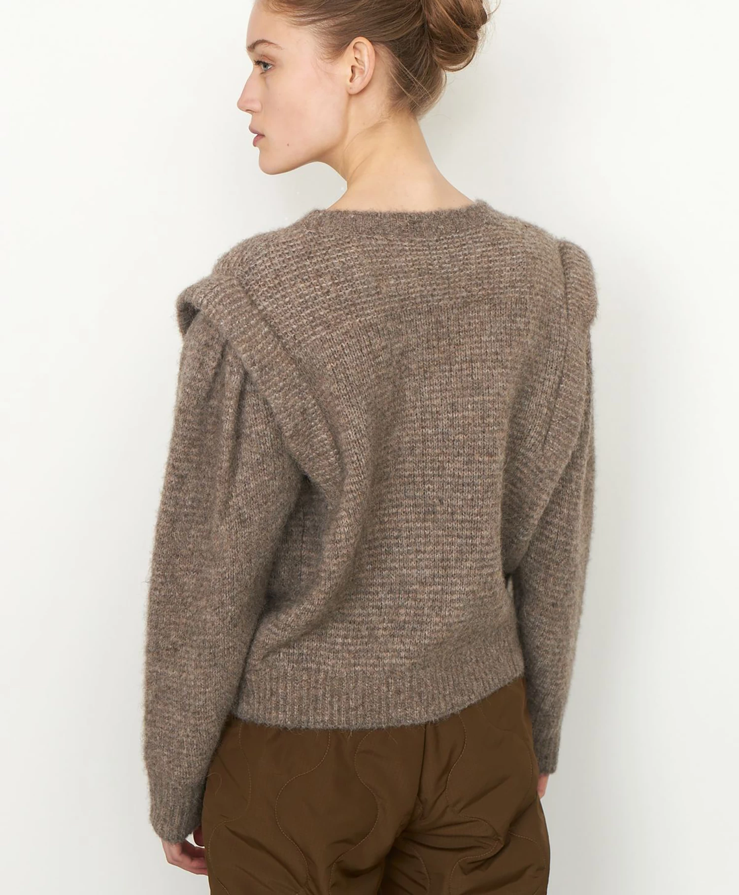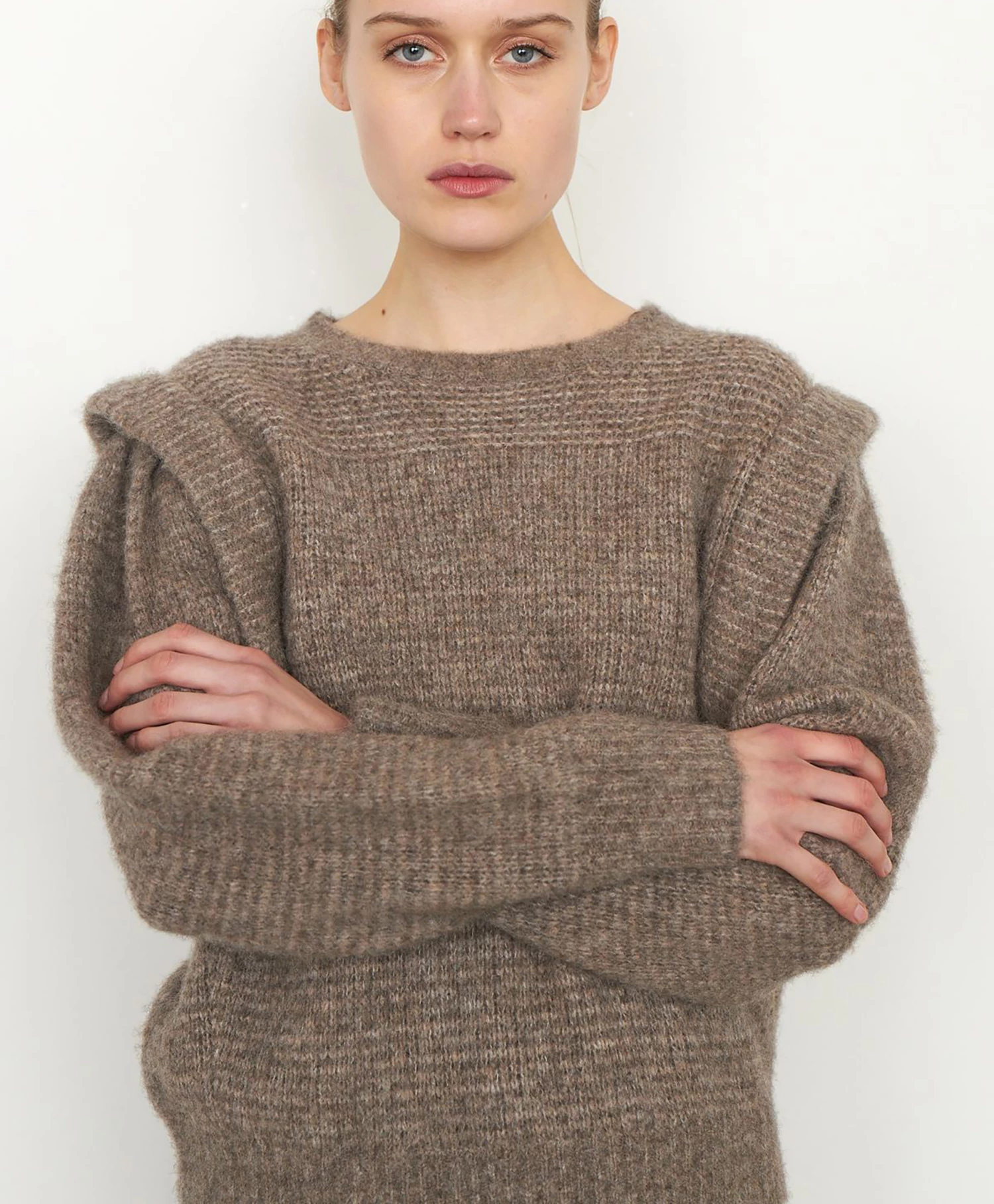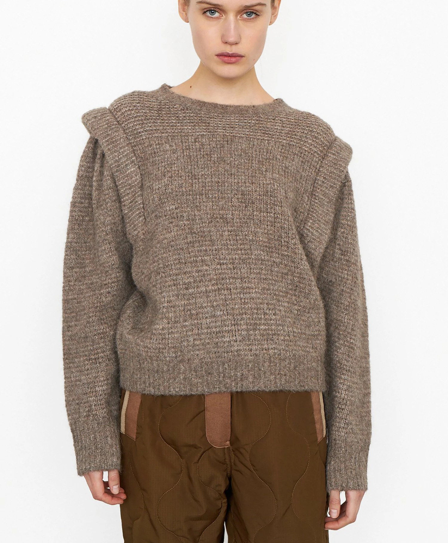 Second Female statement knit made in a soft, alpaca and wool mix quality. The knit has fine ribbing around the rounded neckline, cuffs and hemline. It has wide, unique shoulder detail, voluminous sleeves and regular fit. Statement shoulder Fine ribbing Voluminous sleeve Soft, alpaca and wool mix