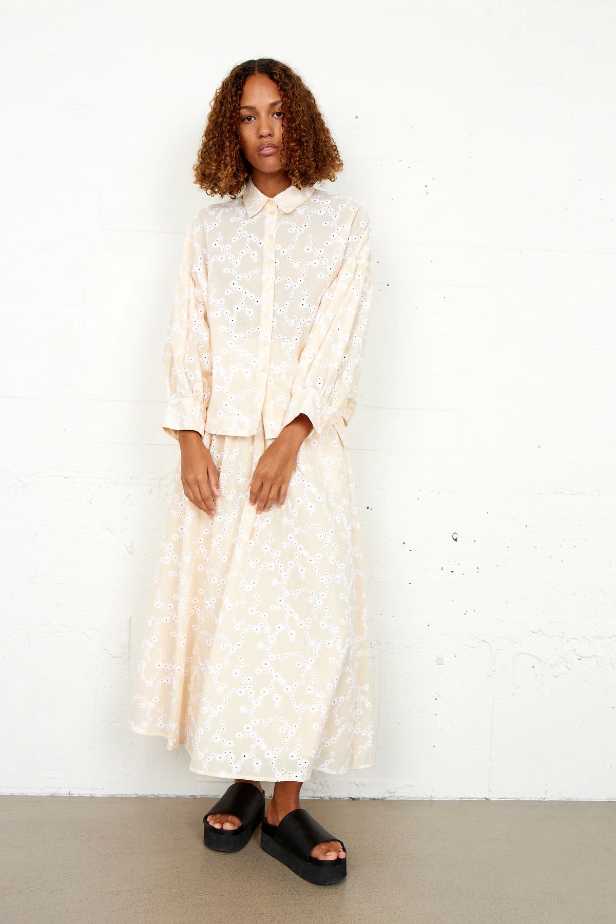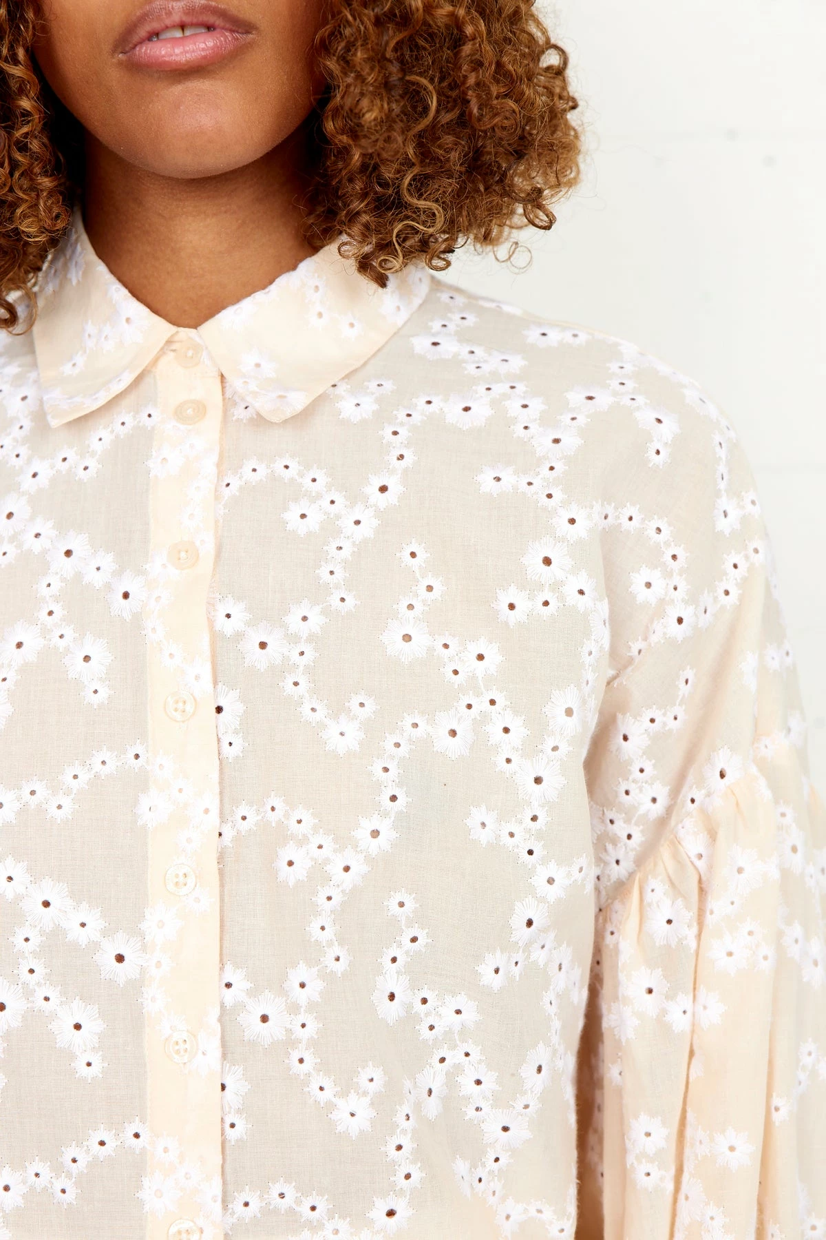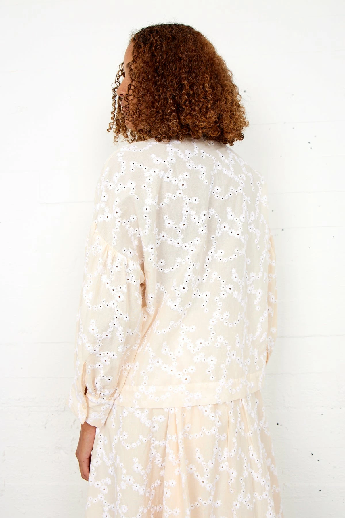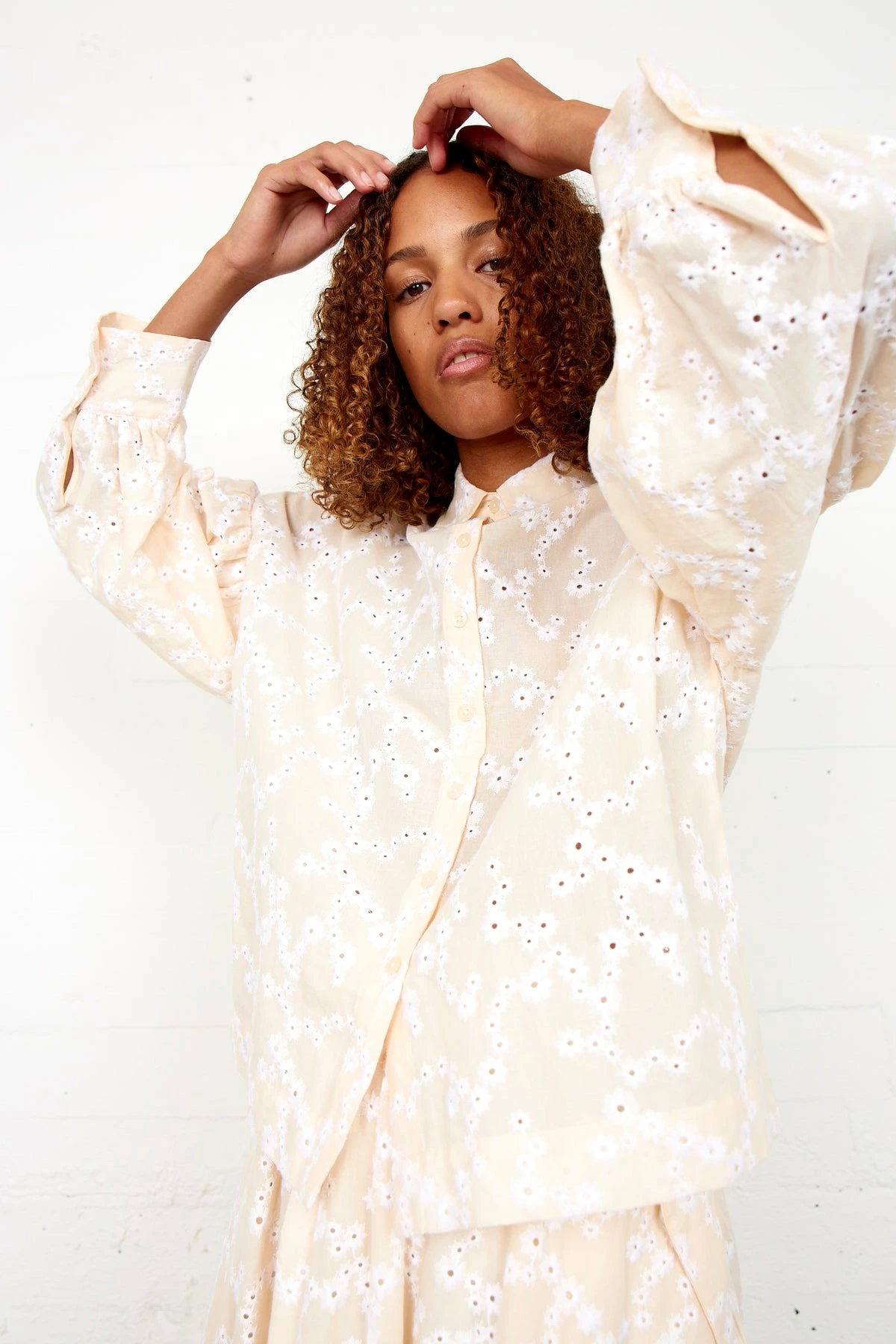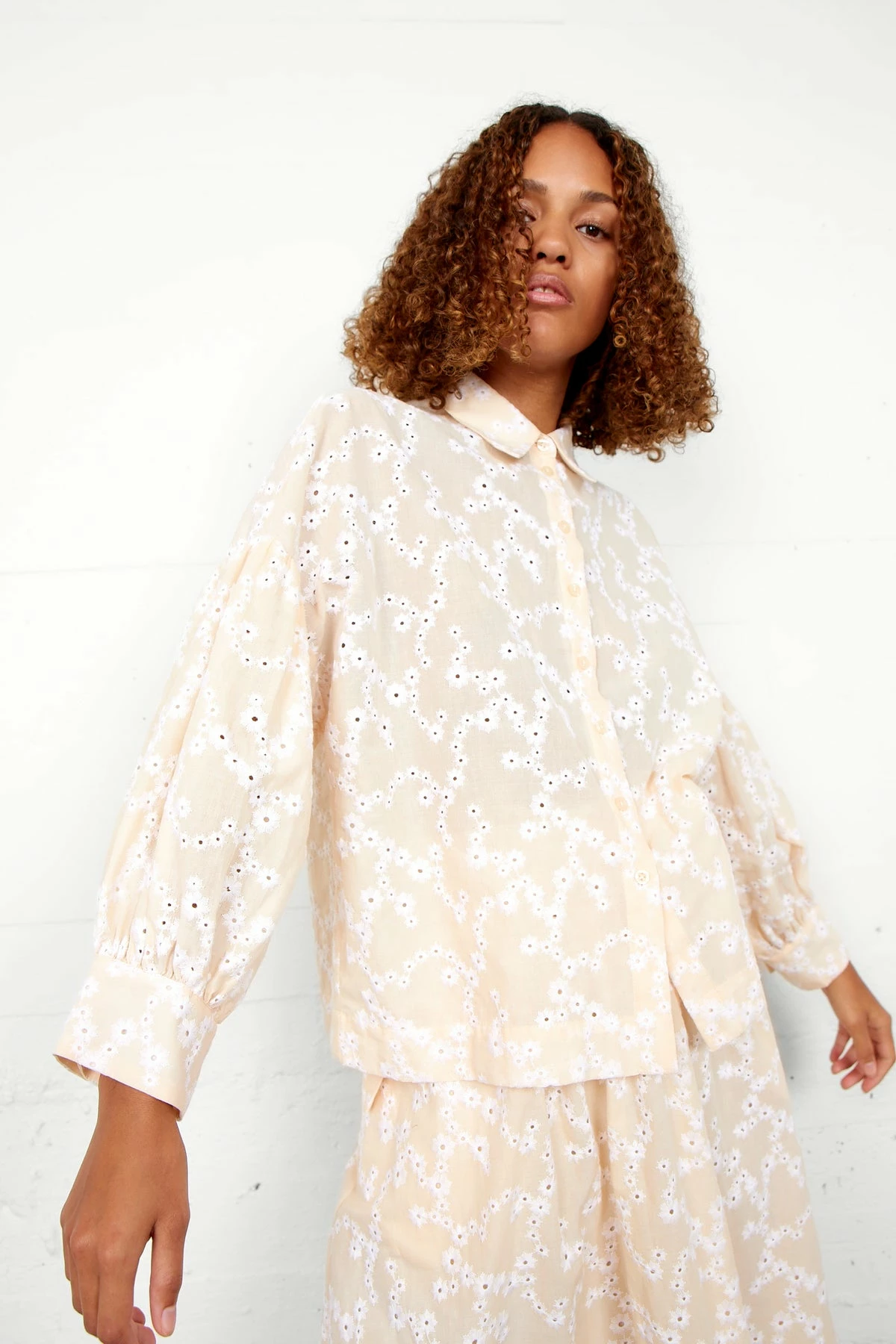 Second Female feminine shirt. Made in light cotton with all over daisy pattern. Featuring a button-through fastening, dropped shoulders and long sleeves and buttoned cuffs.
