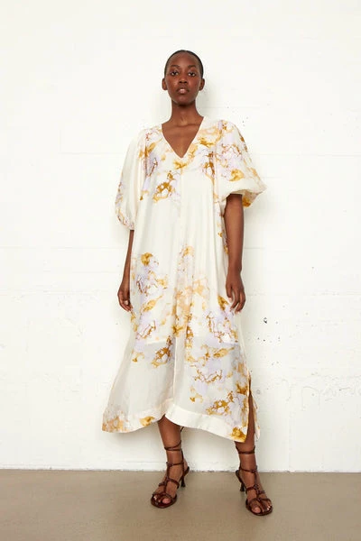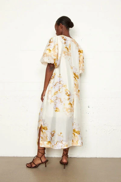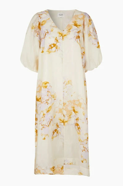 Second Female dress with maxi length, pockets in the sides and V-neck. The sleeves are short and with balloon effect. The dress is A-shaped and has slits in the sides. Maxi dress Pockets in the sides V-neck Short sleeves with balloon-effect Part of our Sustainable Choice 70% Recycled polyester 30% Polyester 98% Polyester 2% Elasthane