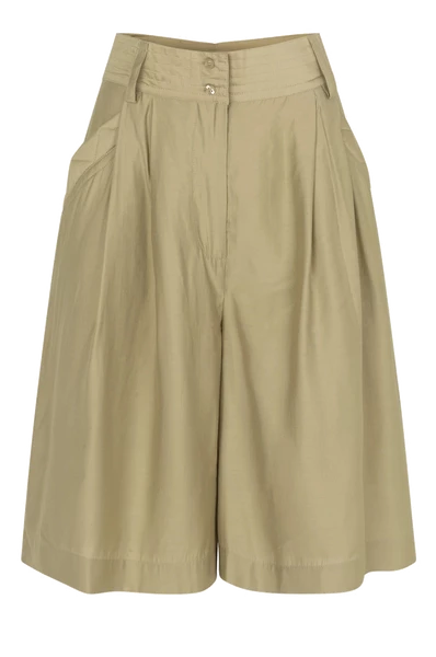 Second Female culotte shorts with stitching detail. Made in a viscose-blend that has a lovely drapy quality. Featuring a button and concealed zip fastening, stitching detail around waistband and zig-zag stitching at pockets. High waist and fitted across hips with wide culotte legs.