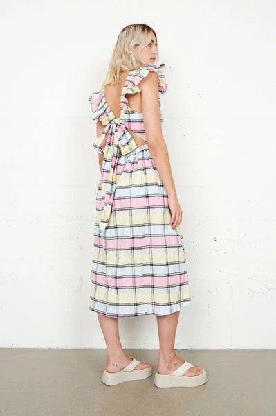 Second Female apron dress. Made in a lightweight, semi-sheer organic cotton blend. Featuring an open back with elasticated hem and tie fastening across the back. Straight neckline with elasticated shoulder straps and ruffle trim. Fitted at waist with some fullness in skirt. Fully lined.Sustainable choiceApron styleFitted waist with full skirt 60% Organic cotton 33% Polyester 7% Nylon Wash – 30°C (Gentle Process) Bleach – Do not bleach Tumble Dry – Do not tumble dry Ironing – Low Dryclean – No dry clean Wash inside out with similar colours Shrinkage up to 5%