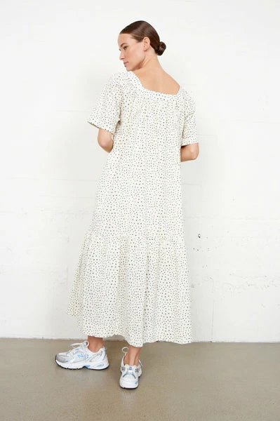 cc Second Female maxi dress with square neckline. Made in light and airy cotton with all-over print. Featuring a square neckline at the front and back with small tucks that create extra volume. Wide sleeves and concealed pockets in the side seams. Wide tier at bottom hem that adds a feminine edge to the voluminous shape .Lightweight printed cottonSquare necklineVoluminous shape with tier 100% Cotton Wash – 30°C (Gentle Process) Bleach – Do not bleach Tumble Dry – Do not tumble dry Ironing – Low Dryclean – No dry clean Wash inside out with similar colours Shrinkage up to 5%