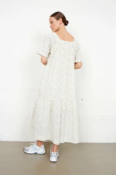Second Female maxi dress with square neckline. Made in light and airy cotton with all-over print. Featuring a square neckline at the front and back with small tucks that create extra volume. Wide sleeves and concealed pockets in the side seams. Wide tier at bottom hem that adds a feminine edge to the voluminous shape . Lightweight printed cotton Square neckline Voluminous shape with tier Wash – 30°C (Gentle Process) Bleach – Do not bleach Tumble Dry – Do not tumble dry Ironing – Low Dryclean – No dry clean Wash inside out with similar colours Shrinkage up to 5%