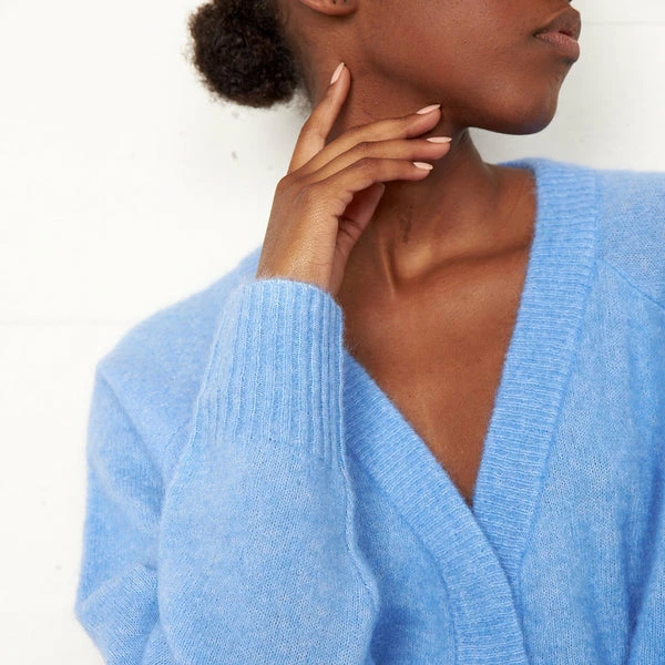 Absolutely love this cardigan! The cornflower blue color is stunning and the boxy fit is perfect for a relaxed, chic look. Highly recommend!