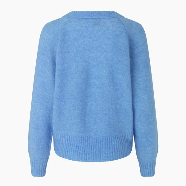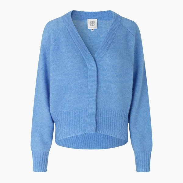 Crafted in a certified, soft mohair and wool mix yarn in a pretty, cornflower blue hue, this boxy cardigan from women’s fashion brand Second Female features fine ribbing along the deep V-neckline, front opening, hemline and cuffs, hidden push buttons, long raglan sleeves, and a loose but not oversized fit. Perfect for the changing seasons, this must-have wardrobe staple is great for layering up on cold winter days, or styling over a dress as the weather warms up, and adding a subtle hint of springtime colour to any outfit. Brook Cornflower Blue Boxy Knit Cardigan from Second Female. Made from 34% Mohair, 34% Wool, 27% Polyamide, 5% Elasthane. Hand wash. Do not bleach. Ironon low. Dryclean – Any Solvent Except Trichloroethylene. Lay flat for drying and storing to ensure shape. Do not tumble dry. Season: Spring 2022.
