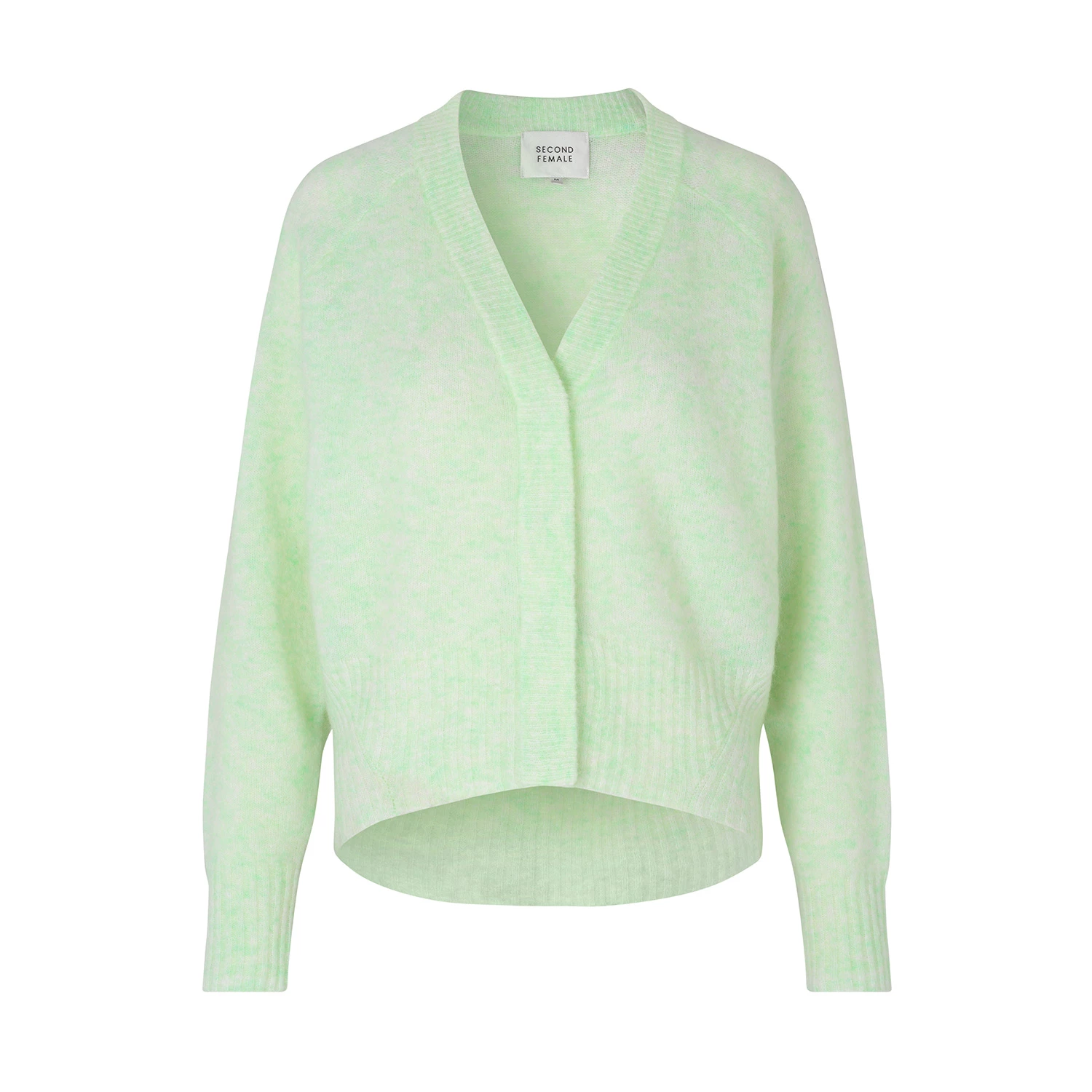 • Soft, mohair mix quality • Push button • Loose fit Colour: Clearly aqua (light green) Composition: 34% Mohair, 34% Wool, 27% Polyamide, 5% Elasthane Care label: • Hand wash • Low Ironing • Flat dry • Lay flat for drying and storing to ensure shape • Do not tumble dry