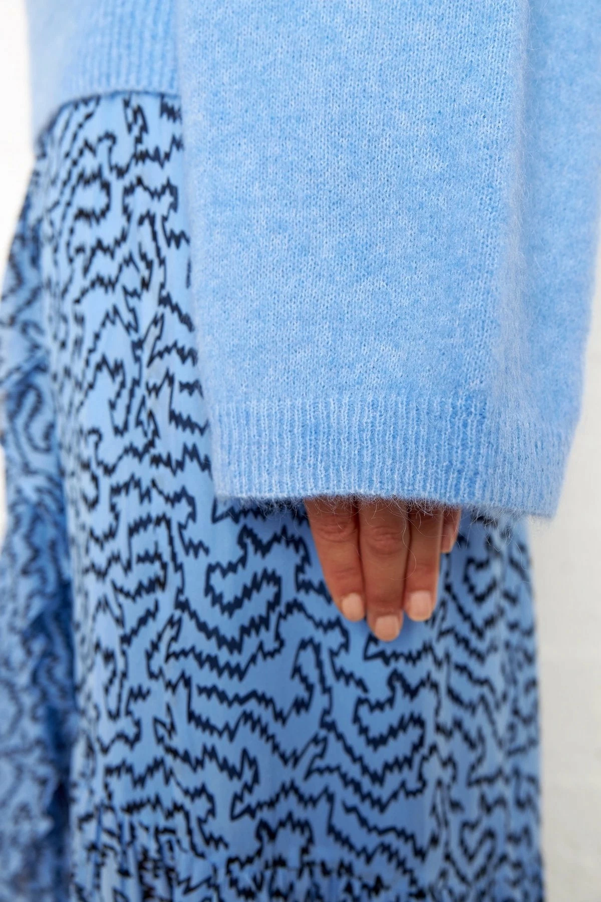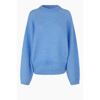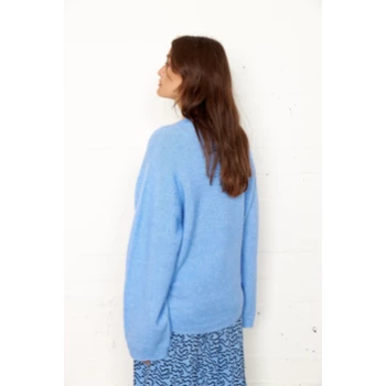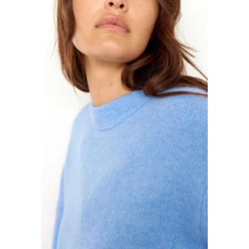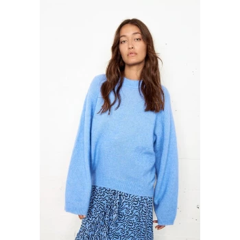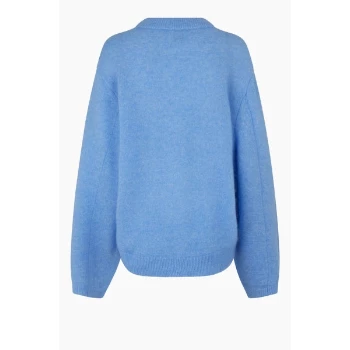 The Second Female Brook Knit is a loose fitting sweater in a mix of wool and mohair. The knit as a rounded neck and wide sleeves. There is rib at neck, the sleeve openings and at the bottom of the body.