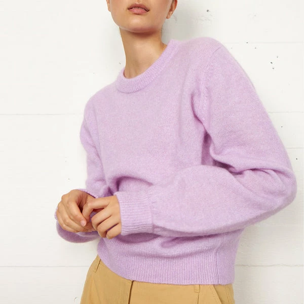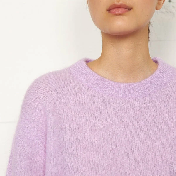 Made from a soft mohair and wool mix in a seasonal, orchid pink hue, this lovely knit from women’s fashion brand Second Female features a round neck, regular fit, voluminous sleeves, dropped shoulders, and ribbing along the neck, hemline and cuffs. Perfect for year round layering, this looks lovely styled with a midi skirt, or layered up on colder days. Brook Orchid Bloom Drop Shoulder Knit from Second Female. Made from 34% Mohair, 34% Wool, 27% Polyamide, 5% Elasthane. Hand wash. Do not bleach. Do not tumble dry. Iron on low. Dryclean – Any Solvent Except Trichloroethylene. Dry flat. Season: Spring / Summer 2022.