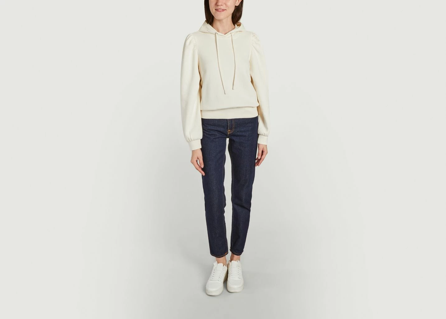 Hoodie made of soft cotton blend. It features long sleeves, shoulder gathers, fine ribbing along the cuffs and hem and a drawstring hood. Straight cut. For a casual look we opt for this soft hoodie from Seconde Female. The gathers at the shoulders bring a touch of femininity, it will be associated as well with jeans as with a skirt for a more feminine look.