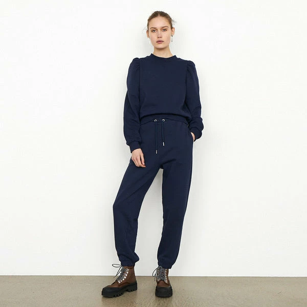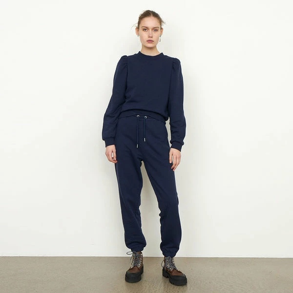 Made from a soft cotton blend fabric in a Maritime Blue colour, these lovely lounge pants from women’s fashion brand Second Female feature a wide waistband with drawstring closure, side pockets, back pocket, elasticated cuffs and a regular fit. Perfect for cosy days lounging at home, these are sure to be a favourite throughout the chilly Autumn and Winter months. Carmella Maritime Blue Sweat Pants from Second Female. Made from 65% Cotton, 35% Polyester. Wash at 40°C (Normal Process) – Wash inside out with similar colours. Do not bleach. Do not tumble dry. Iron on medium. Dryclean – Any Solvent Except Trichloroethylene. Shrinkage up to 5%. Season: Autumn / Winter 2021.
