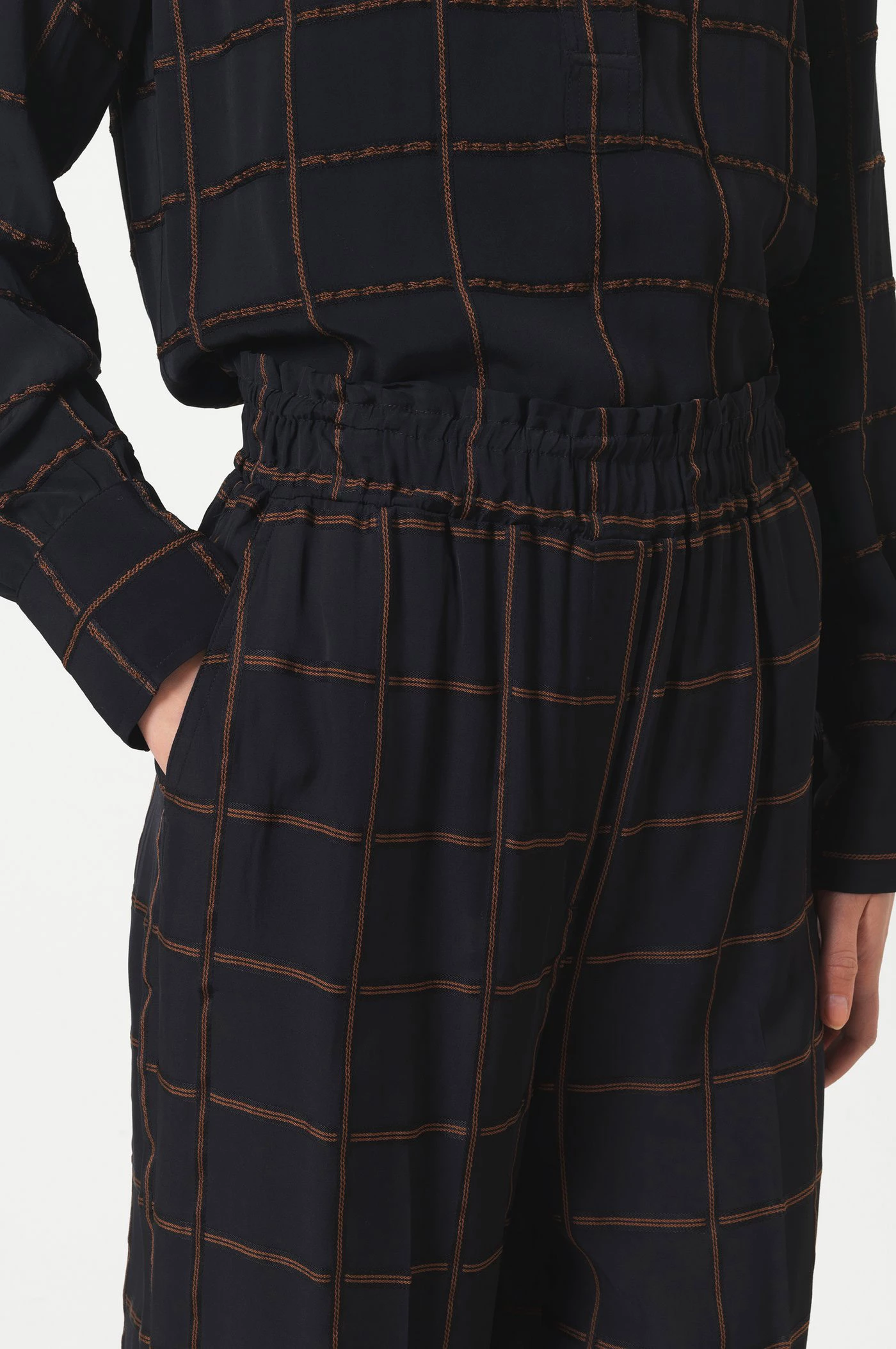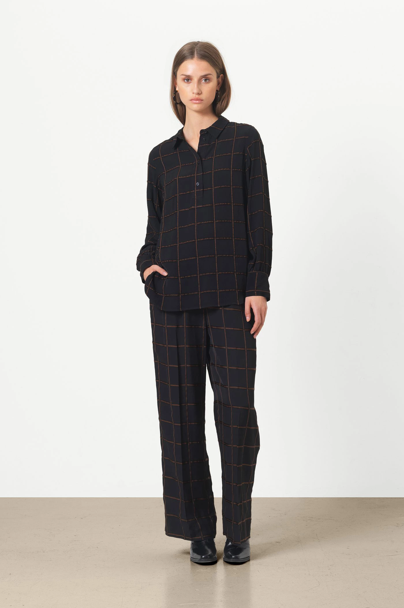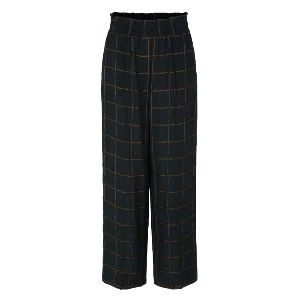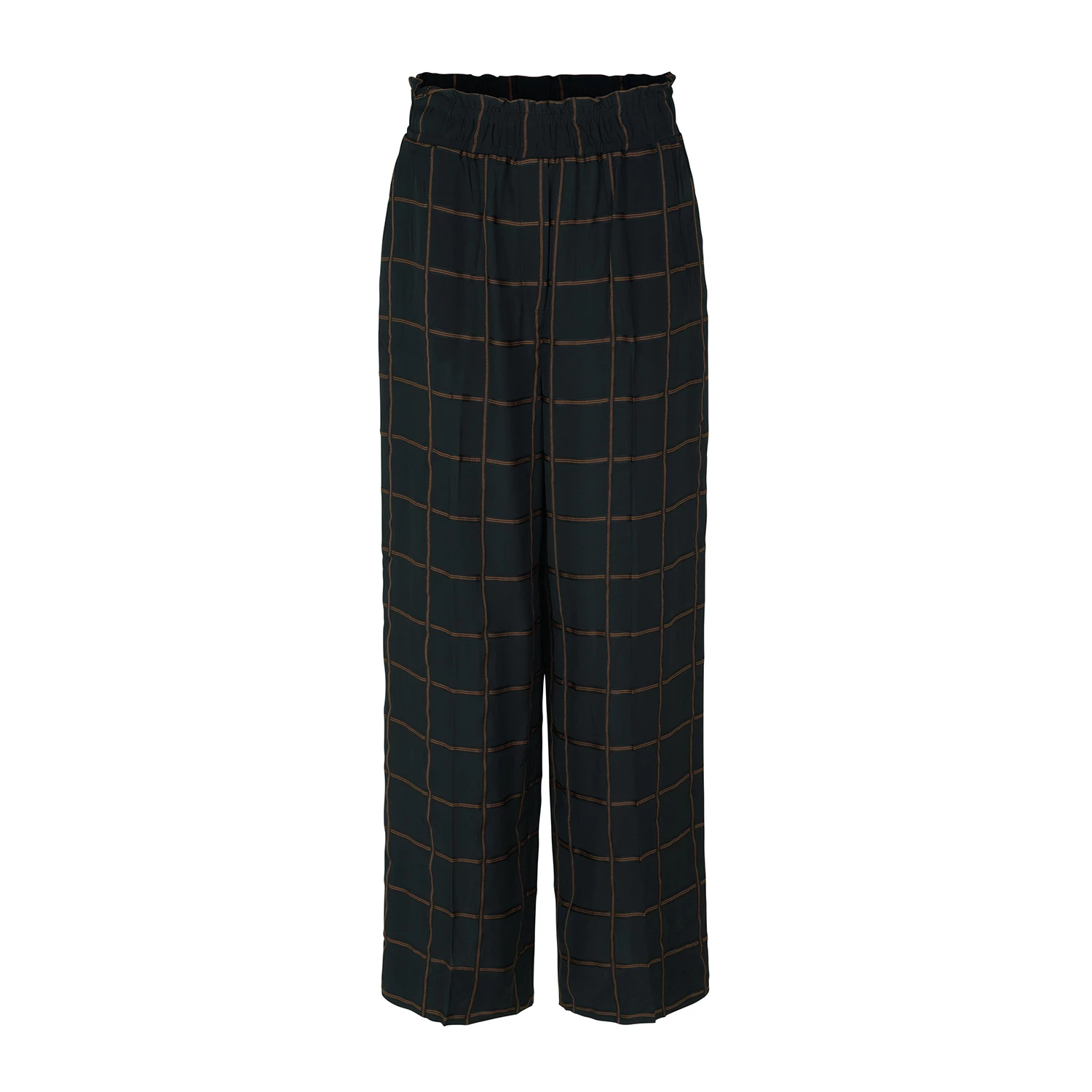 Colour: Black • Viscose mix • Jacquard check • Full length and wide legged Material: 80% Viscose, 20% Polyester • Gentle machine wash at 30°C • Do not tumble dry • Iron (low) into shape when damp • Shrinkage up to 5%