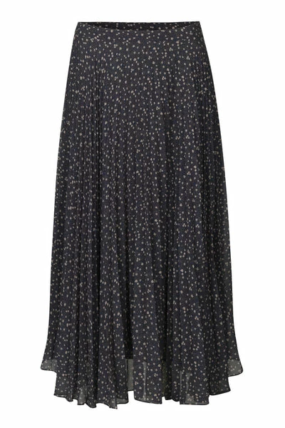 This gorgeous midnight blue maxi pleated skirt boasts tiny flowers in cream. Pair with a chunky sweater or blouse for a feminine take on Winter. 100% Recycled polyester