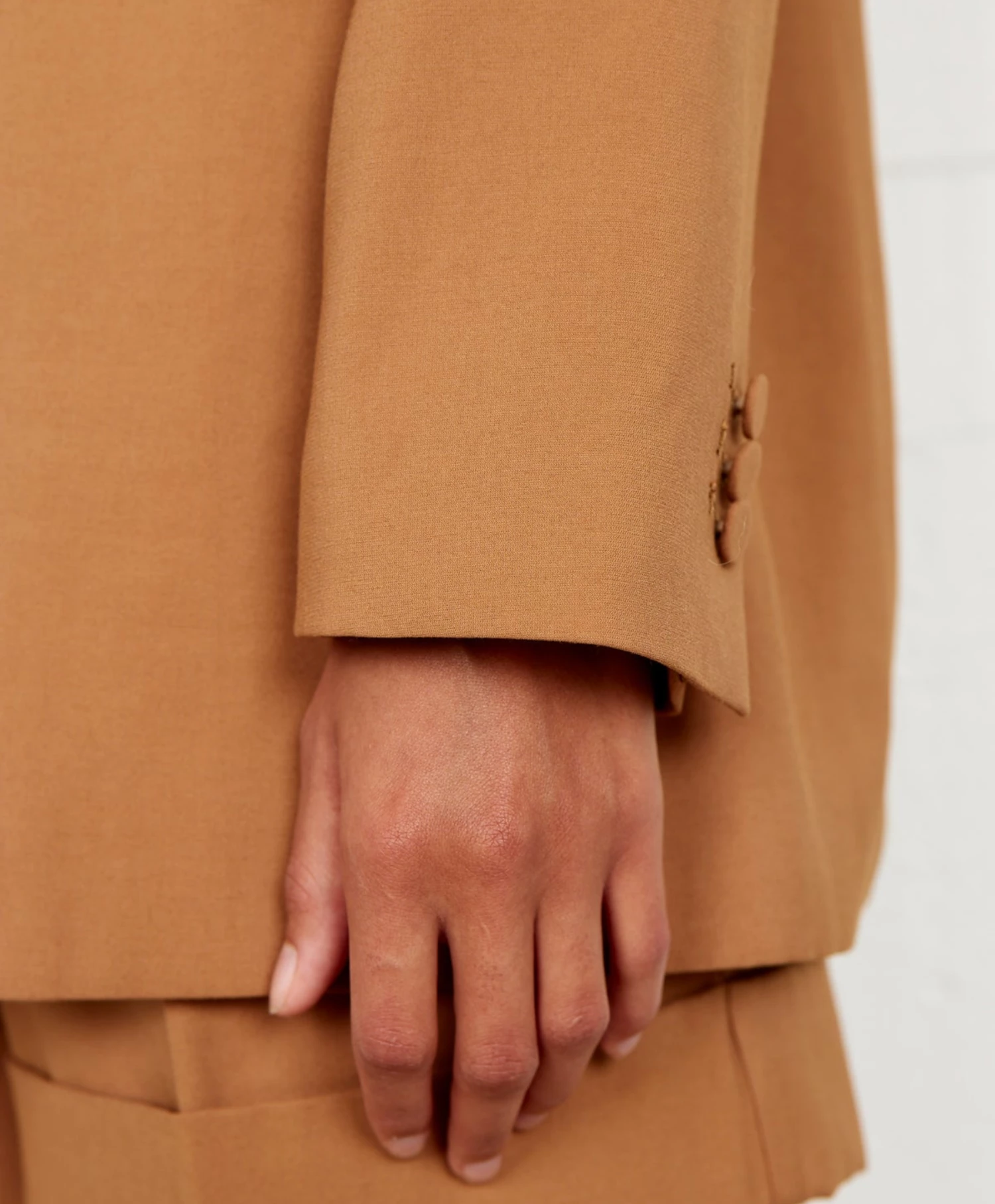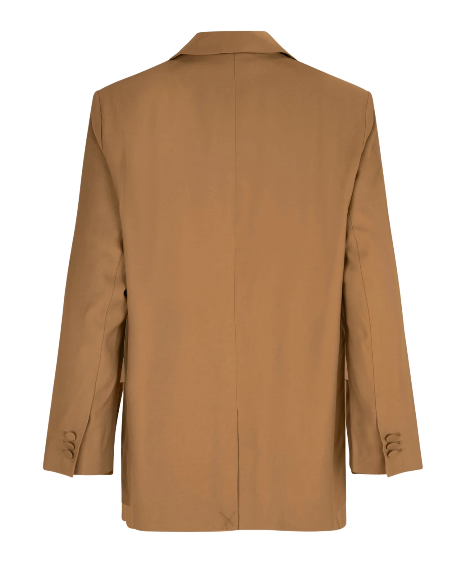 Second Female minimalistic blazer. Made in light and smooth viscose blend. Featuring an open front with narrow peak lapel and covered buttons at cuffs. Padded shoulders and slit at back. Loose, relaxed fit. Light and smooth viscose blend Narrow peak lapel Loose, relaxed fit
