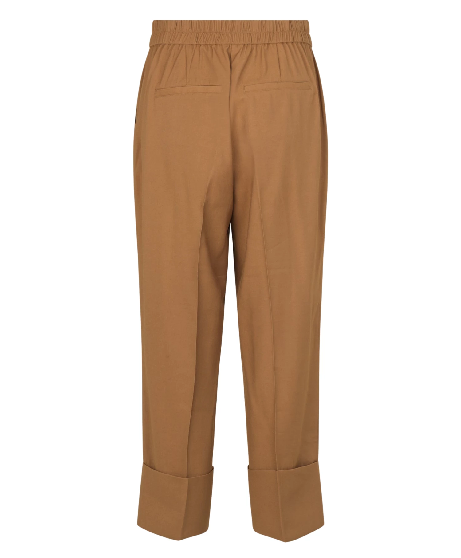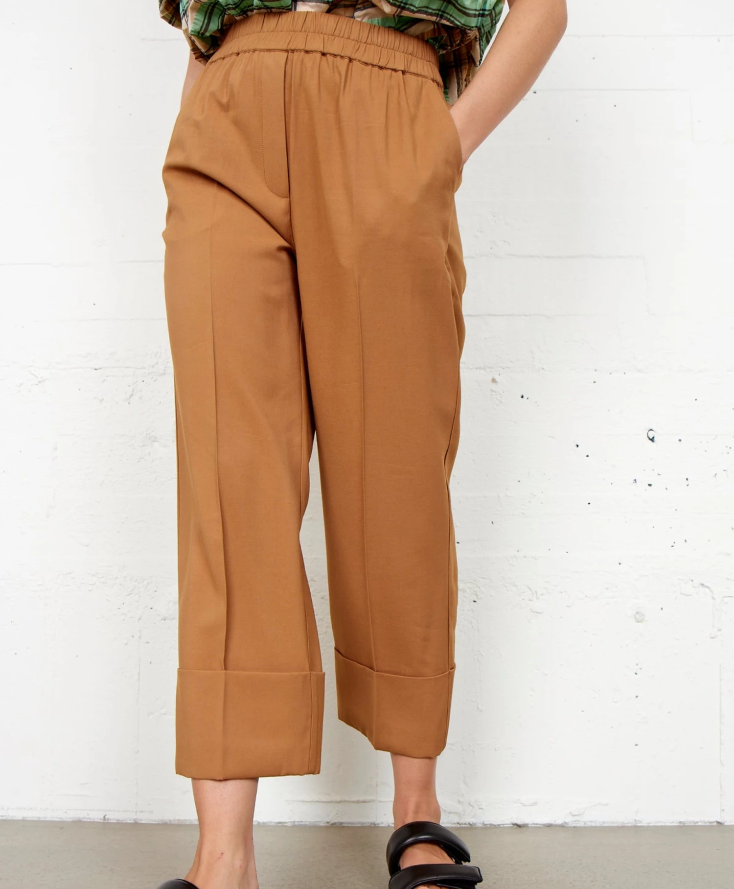 Second Female trousers with turn ups. Made in light and smooth viscose blend. Featuring an elasticated waist, slant pockets at the front and welt pockets at the back. Faux fly, wide turn ups and creases down the front and back. Loose leg with cropped length. Light and smooth viscose blend Wide turn ups Loose, cropped leg
