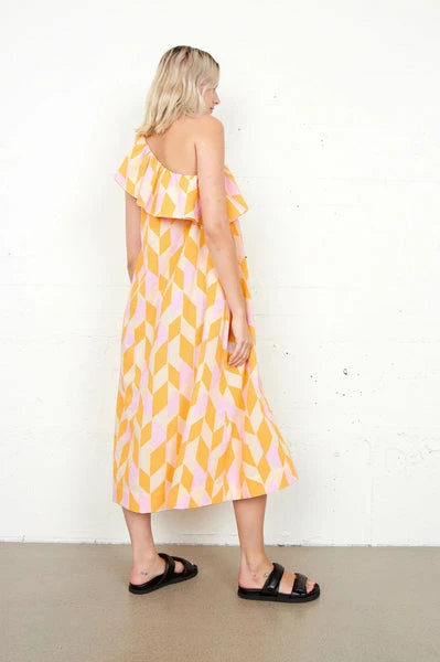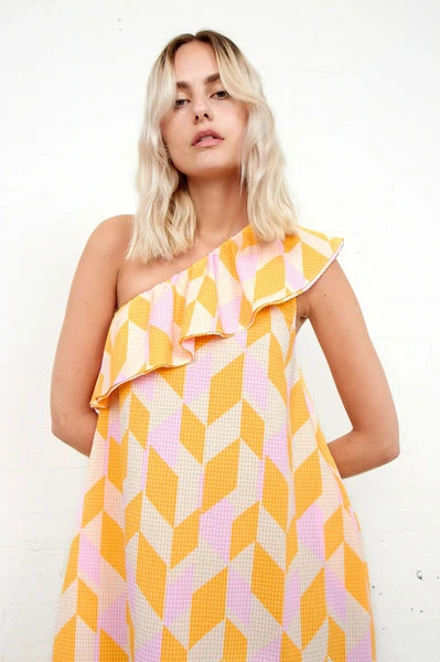 Sustainable choiceOne-shoulder designA-shaped silhouette 100% Recycled polyester Wash – 30°C (Gentle Process) Bleach – Do not bleach Tumble Dry – Do not tumble dry Ironing – Low Dryclean – Any Solvent Except Trichloroethylene Shrinkage up to 5% Wash inside out Wash dark colours separately