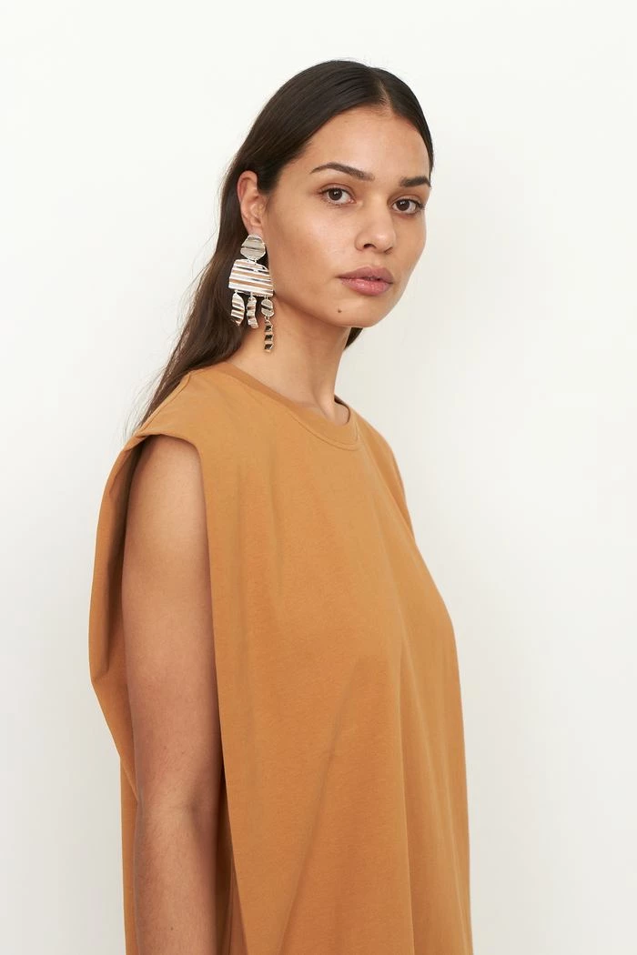 Second Female dress made in a soft, 100% cotton quality. The beautifully soft dress has wide shoulders and fine edge tape around the rounded neckline. The dress has loose fit and midi length. Wash – 30°C (Gentle Process) Bleach – Do not bleach Tumble Dry – Do not tumble dry Ironing – Low Dryclean – No dry clean Shrinkage up to 5% Wash inside out with similar colours