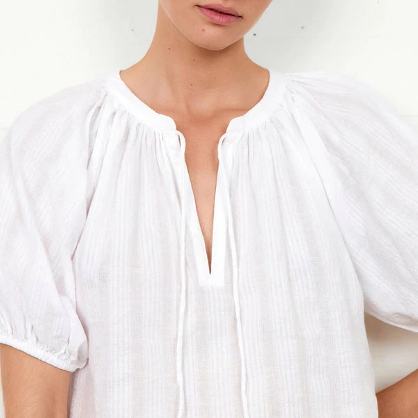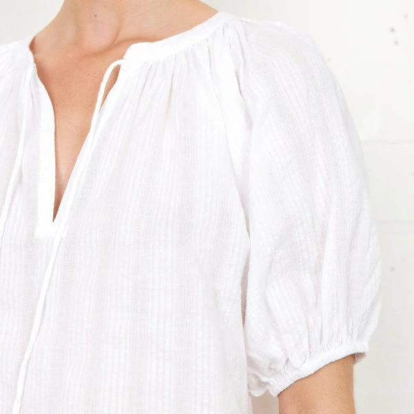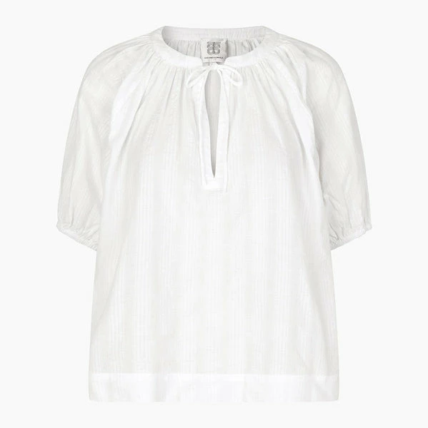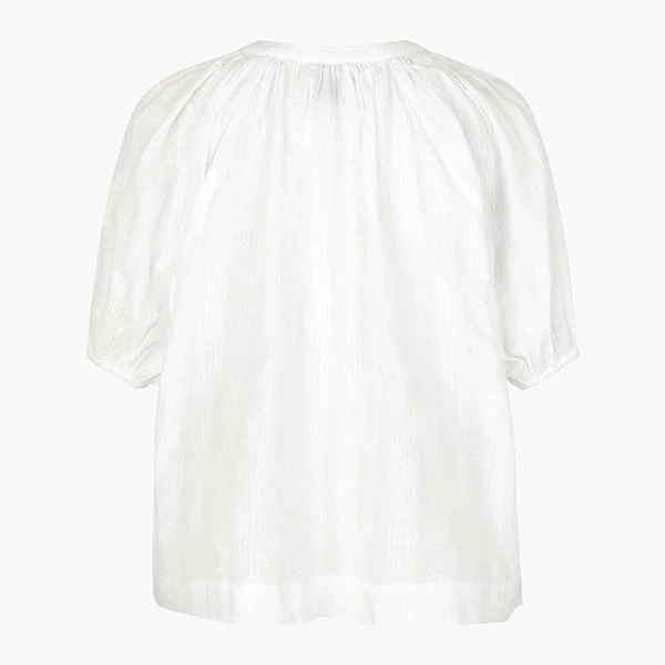 Crafted in lightweight 100% cotton in a classic white, this peasant-style blouse from women’s fashion brand Second Female has a subtle structured pattern, and features an open neck with tie fastening, three quarter length sleeves with narrow band cuffs, and a relaxed, straight fit. Perfect for everyday wear, this looks lovely styled with a floaty midi skirt in Summer, or paired with high waisted jeans to transition into Autumn. Frigg White Shirt from Second Female. Made from 100% Cotton. Wash at 30°C (Gentle Process). Do not bleach. Do not tumble dry. Iron on low. Dryclean – Any Solvent Except Trichloroethylene. Wash inside out with similar colours. Season: Summer 2022.