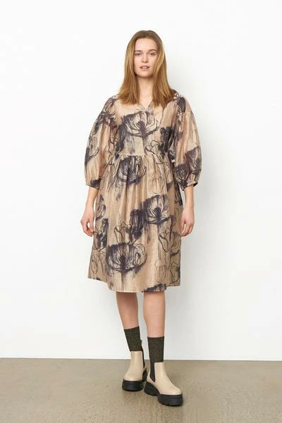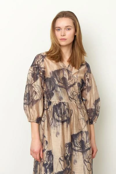 This wrap dress from Second Female is a cut in a beautiful semi sheer Tencel linen blend with an all over floral print. The V neck and classic tie fastening balance the balloon 3/4 length sleeve. A removable slip dress ensures that the dress is not see through, and the style looks great styled with chunky boots or dressed up with a heel. Wrap style with tie fastening V neckline Removable slip dress Shell 65% Lyocell 19% Polyamide 16% Linen Liner 100% Viscose Hand wash 55412