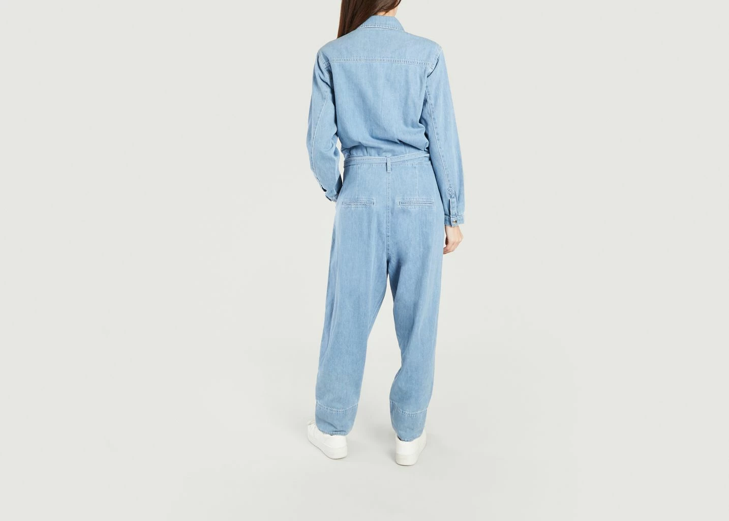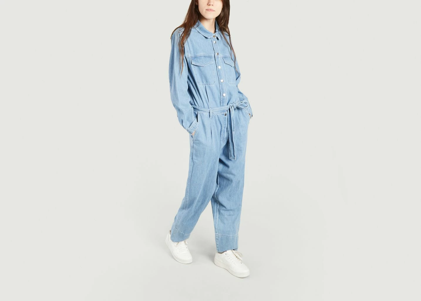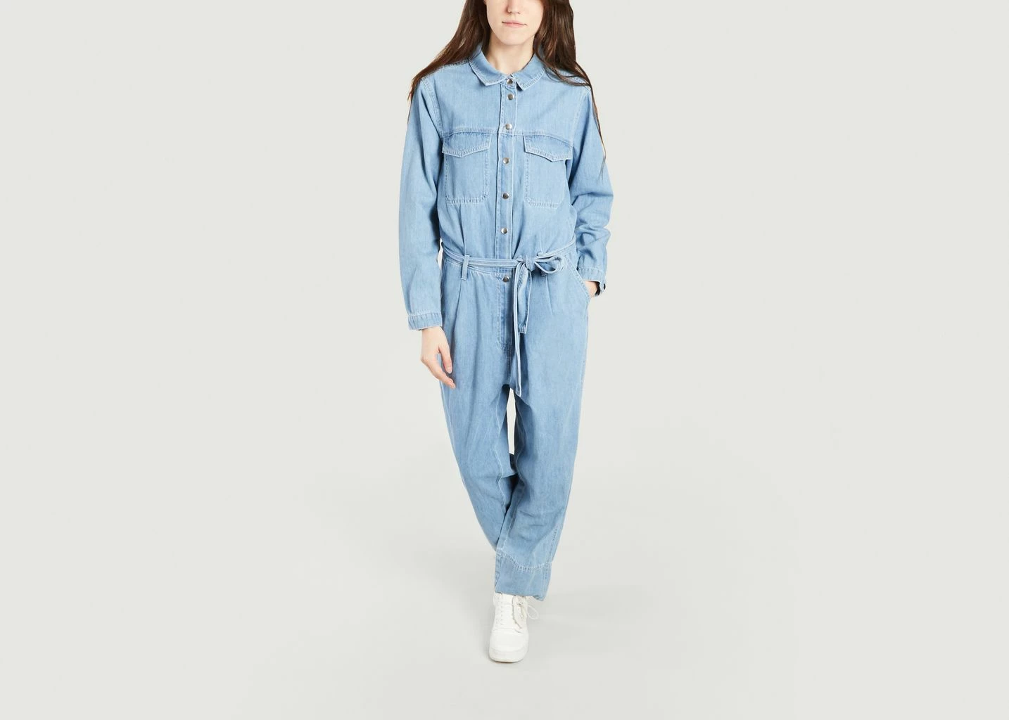 Light blue denim jumpsuit made of cotton. It has 1 button cuffs, long sleeves, stitched hem, buttonhole with snaps, flapped collar, two chest pockets, two back welt pockets, two side pockets, drawstring waist. Opt for this Ingrid jumpsuit by Second Female. Comfortable, it is perfect for mid-season. Pair it with white sneakers for a casual look.