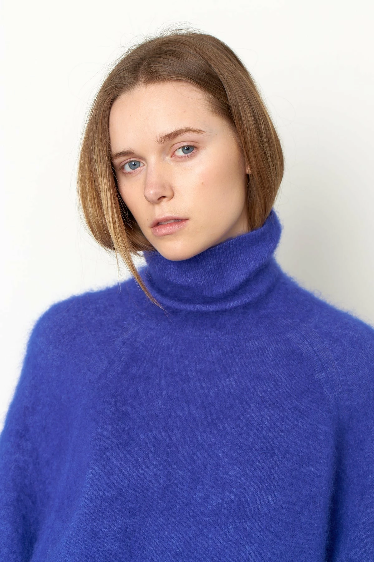 Second Female knit made in a soft, certified mohair and wool mix quality. The knit has fine ribbing along the high T-neck, hemline and cuffs. It has raglan sleeves. Soft, certified mohair and wool mix quality High T-neckline Fit: Loose, but not oversized Part of our Sustainable Choice 34% Mohair 34% Wool 27% Polyamide 5% Elasthane Hand wash Bleach – Do not bleach Tumble Dry – Do not tumble dry Ironing – Low Dryclean – Any Solvent Except Trichloroethylene Drying – Flat dry Lay flat for drying and storing to ensure shape