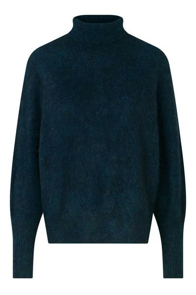 This lovely new high turtle neck knit from Danish brand Second Female is made in a soft, certified mohair and wool mix quality. The knit has fine ribbing along the high T-neck, hemline and cuffs. Long and boxy in shape and with raglan sleeves it is a lovely style to wear with denim or leather leggings. Also available in bright Spectrum Blue. Soft, certified mohair and wool mix quality High T-neckline Fit: Loose, but not oversized Part of our Sustainable Choice 34% mohair, 34% wool , 27% polyamide ,5% elastane Hand wash 55289