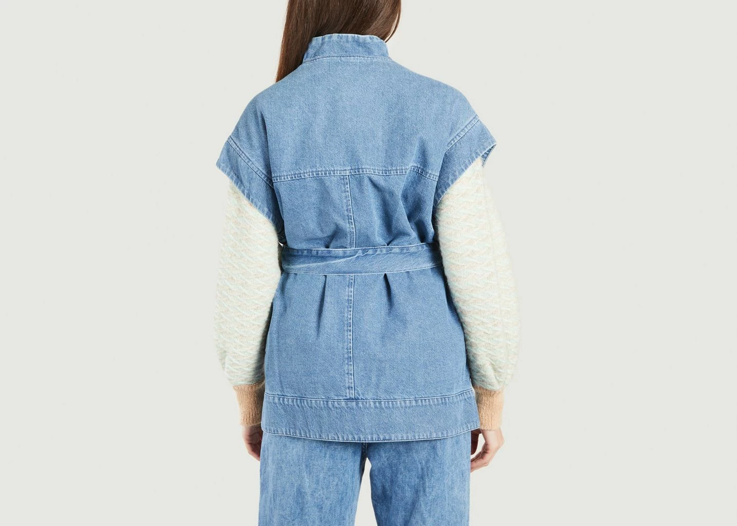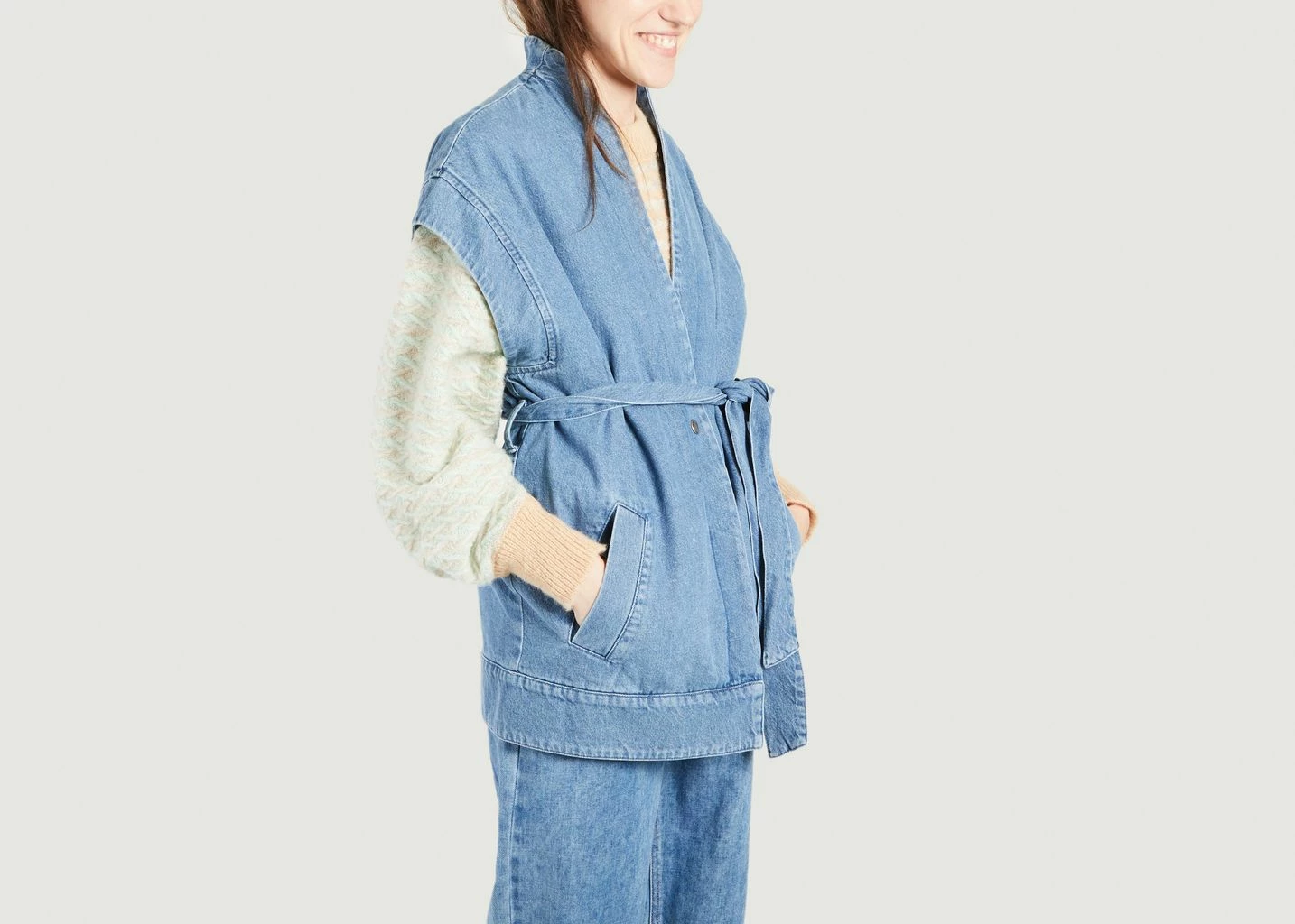 Sleeveless vest in cotton. It features two front pockets, a tie belt and a stand-up collar. For a trendy casual look, go for the Jeanie vest by Second Female! It can be worn in mid-season over a shirt and on cooler days over an undershirt under a coat.