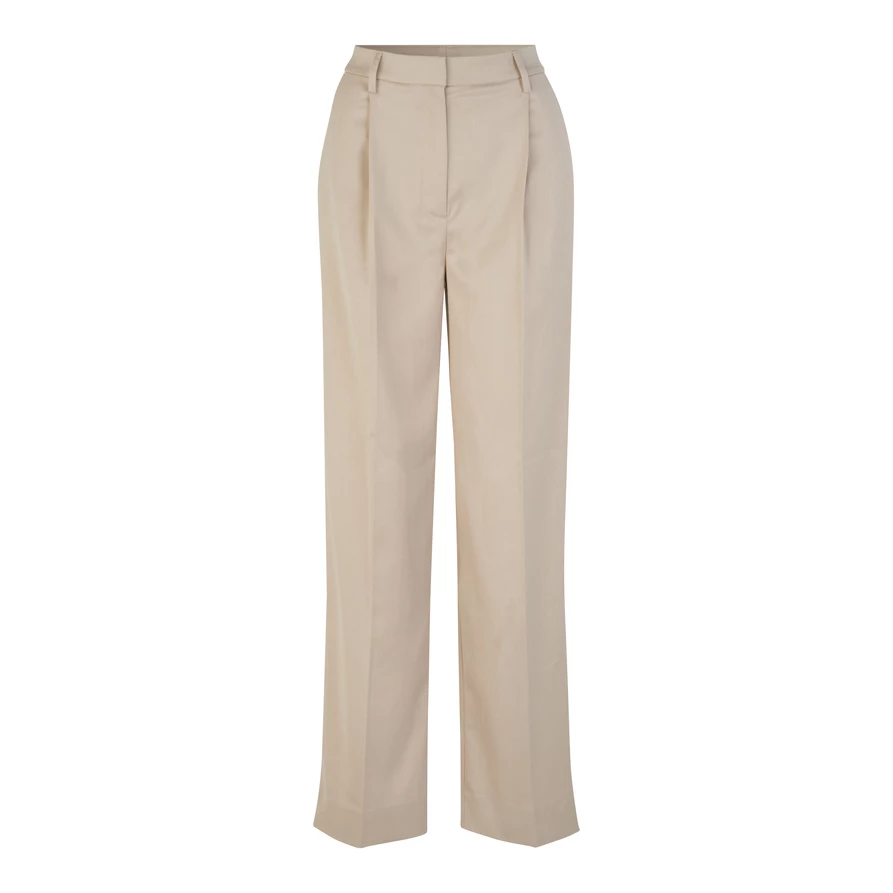 Kaleem Classic Trousers with straight to wide legs. The pants have a waistband, hook & eye and zipper opening at front. It has a pleated front, creaseline details and paspoil pockets at the back. On the waistband there are belt loops.