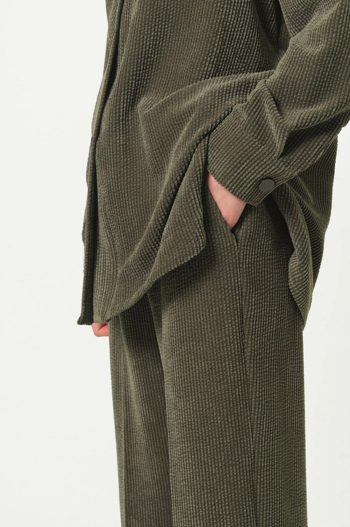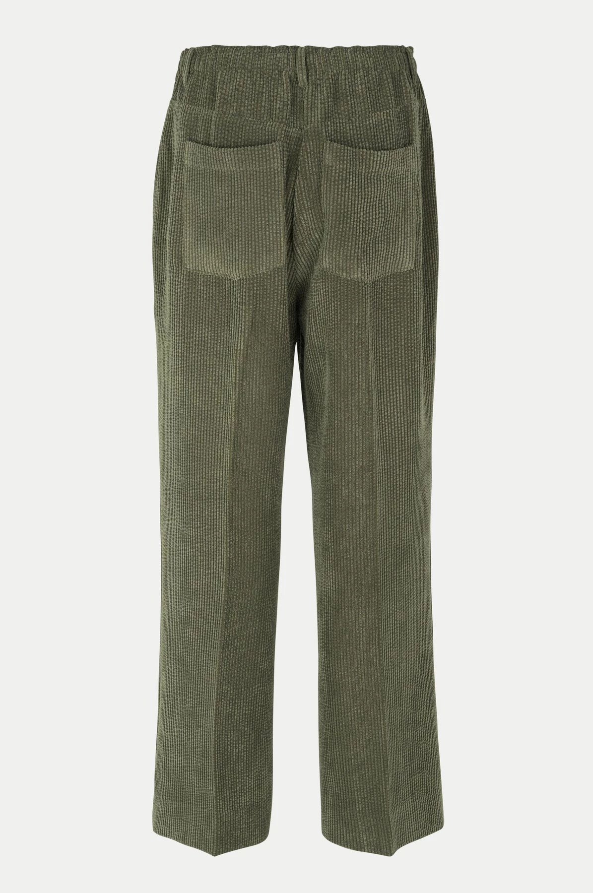 Colour: Sea Turtle (khaki) Wide legged Soft corduroy Full length Material: 62% Polyester – 38% Nylon (Non elastic) Gentle machine wash at 30°C Wash inside out with similar colours