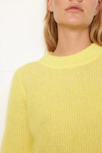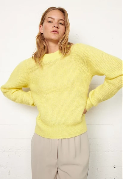 Knit by SECOND FEMALE Super zachte trui van Second Female in een wolmix met mohair. Dit model heeft een losvallende pasvorm, ribgebreide boorden en raglanmouwen. In een frisse felle citroen gele kleur Twijfel je over de maat of model dan mag je altijd een berichtje sturen. Dat kan via de website chat of via instagram dm. We helpen je graag. Zo kunnen we er samen voor zorgen dat de kans kleiner is dat je het item moet retourneren of ruilen. Happy Shopping! Maaike Second Female knit made in a certified, soft mohair and wool mix quality. Gorgeous knit jumper from Scandinavian brand Second Female, soft mohair and wool mix quality. Simple fine ribbing along neckline, cuffs and hemline, a little bit of volume around shoulder for a delicate puff sleeve. Bringing a little luxury into your everyday pieces with quality that will last. Certified mohair and wool mix Push button Fit: Loose, but not oversized