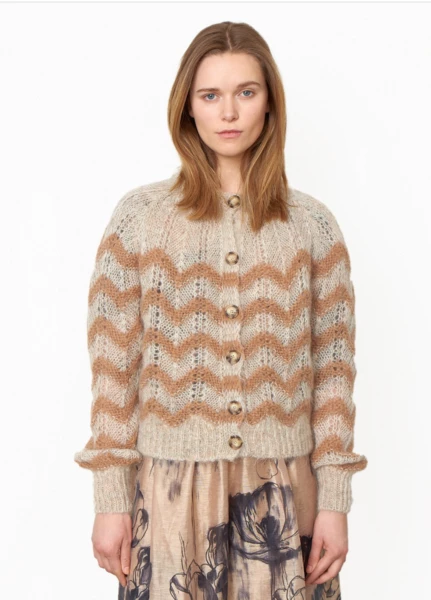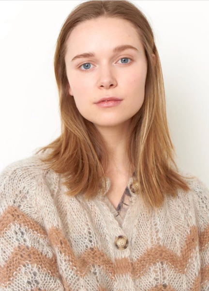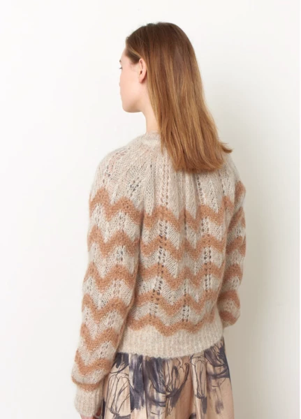 Pull by SECOND FEMALE Second Female knit with zigzag pattern made in a soft, wool and alpaca mix quality. The knit has ribbing along the rounded neckline, hemline and cuffs. It has voluminous raglan sleeves. Wool and alpaca mix quality Zigzag pattern Fit: Loose, but not oversized Rounded neckline Composition 35% Mohair 35% Alpaca 30% Polyamide More info or can’t find what your are looking for? Contact us Can’t decide? Ask your friends!