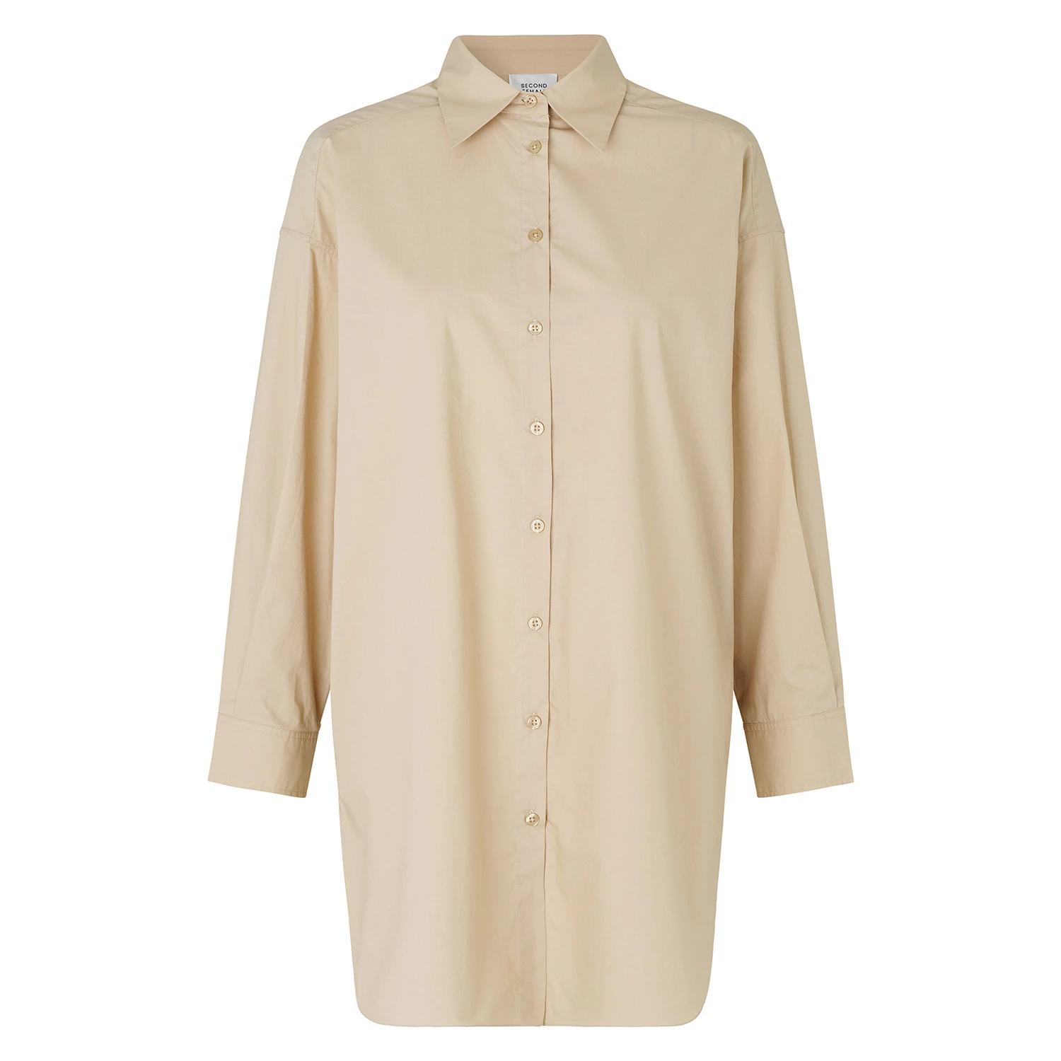 Colour: Beige • Classic shirt in crisp and sustainable cotton • Classic collar and hidden button fastening • Darts at the front for a better fit Composition: 100% Cotton • Gentle machine wash at 30°C • Do not tumble dry • Low ironing • Wash inside out with similar colours