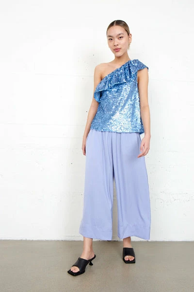 This stunning sequin top from Second Female with have you summer party ready! A fun one shouldered pull on style with a ruffle detail, the double mesh fabrication is covered in circular matt sequins. Wether you wear yours with tuxedo trousers for a big night out, or with denim shorts for festival chic this top has just the right amount of summer sparkle. Pull on One shoulder style with non slip trim Ruffle at the neckline Straight hem All over sequins 100% Polyester Dry Clean 55989