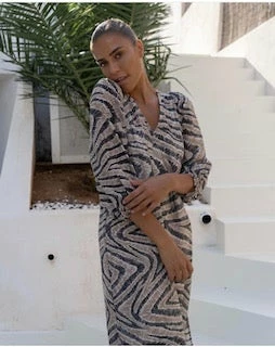 This printed dress is made in a tencel-linen mix quality. The dress has deep V-neckline, gatherings at shoulder to create the perfect puff sleeve and elasticated cuff. The dress has midi length and straight cut. Tencel-linen mix quality Unique print V-neckline Puff sleeve Hand wash Bleach – Do not bleach Tumble Dry – Do not tumble dry Ironing – Low Dryclean – Any Solvent Except Trichloroethylene Wash inside out with similar colours