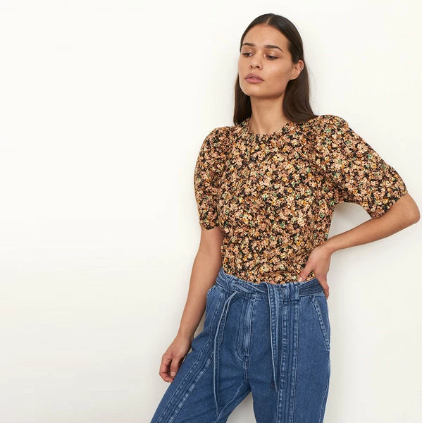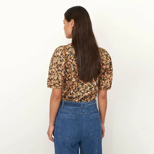 The perfect choice for transitioning your wardrobe into Autumn, this lovely shirt from women’s fashion brand Second Female has been crafted from 100% organic cotton, in a warm toned, dark floral pattern. Featuring a rounded, clean neckline, gatherings on the shoulders for voluminous ¾ length sleeves, and a loose but not oversized fit, this looks lovely paired with jeans for a statement yet casual look that’s perfect for everyday wear. Mayda Toasted Nut Blouse from Second Female. Made from 100% Organic Cotton. Wash at 30°C (Gentle Process). Do not bleach. Do not tumble dry. Iron on low. Dryclean – Any Solvent Except Trichloroethylene. Line dry. Wash inside out with similar colours. Shrinkage up to 5%. Season: Autumn 2021.