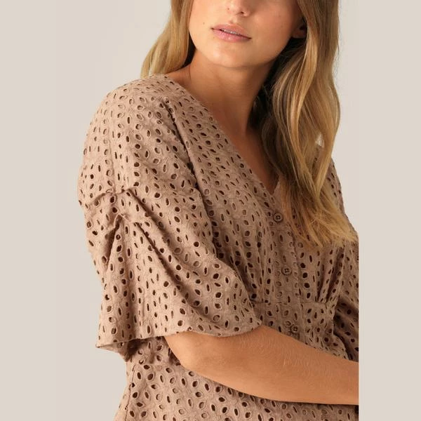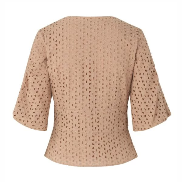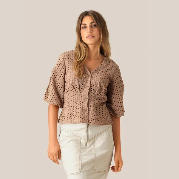 This feminine blouse is made from a 100% cotton fabric in an embroidered hole pattern. The blouse has short sleeves and is slightly crinkled in the sides for optimum fit. Style: Second Female Milly Broderie blouse Composition: 100% cotton Care: handwash