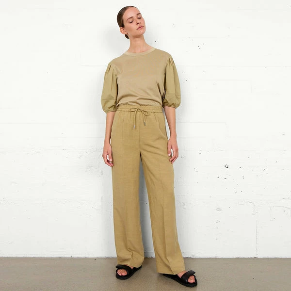 Crafted in a light, tencel-linen blend fabric, these chic trousers from women’s fashion brand Second Female feature an elasticated waist with drawstring tie fastening, two slant pockets at the front, two decorative welt pockets at the back, and a high waist with a straight, loose leg fit. Perfect for comfortable, everyday styling. Nukana Sponge New Trousers from Second Female. Made from 75% Tencel, 25% Linen. Wash at 30°C (Gentle Process). Do not bleach. Do not tumble dry. Iron on low. Dryclean – Any Solvent Except Trichloroethylene. Wash inside out with similar colours. Season: Summer 2022.
