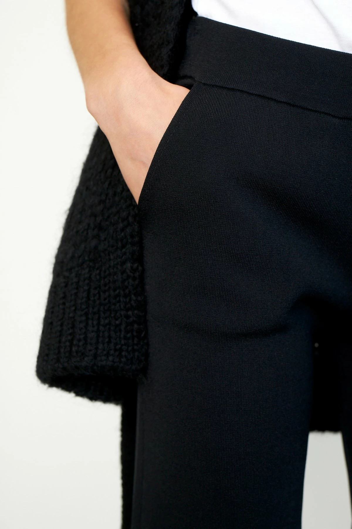 Colour: Black • Knitted trousers • Straight leg • Soft viscose blend Material: 75% Viscose, 25% Polyamide Care: • Hand wash • Do not tumble dry • Ironing – Medium • Flat Drying In The Shade