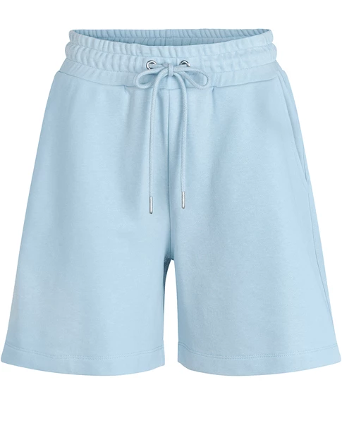 Second Female Polifoil Nantucket Shorts, a pale blue pair of stretchy cotton shorts with a drawstring waistband. These mid thigh length long shorts have side pockets and a matching sweatshirt available. Crafted from soft jersey the Polifoil shorts are a Summer must have for home or holiday. 85% Cotton & 15% Polyester Machine wash at 30 XS – UK8, S – UK10, M – UK12, L – UK14 Size down if between sizes as Second Female sizes generously
