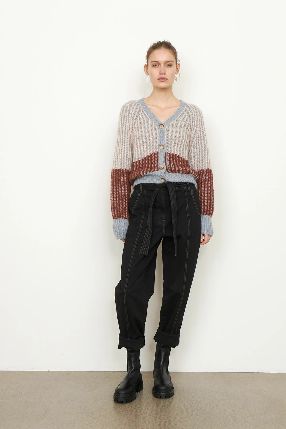 Rosini Knit Cardigan unique, striped cardigan made in an alpaca mix quality. It has deep V-neckline and front opening with contrast buttons. The cardigan has fine ribbing along the opening, high cuff and hemline. It has regular fit.