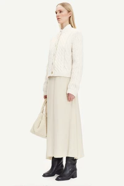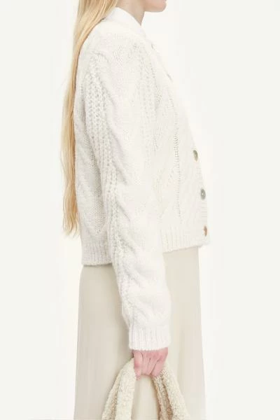 Regular fitting cardigan with cable stitch pattern and large shell buttons. Rib trimmed crew neckline, cuffs and hem. Chunky gauge wool and alpaca blend yarn, RWS certified. Center back length on size small is 50.5 cm. 70% Wool, 30% Alpaca The wool is RWS certified. Wash & Care Hand wash Do not bleach Ironing with low heat Dryclean with any solvent except Trichloroethyle Flat dry