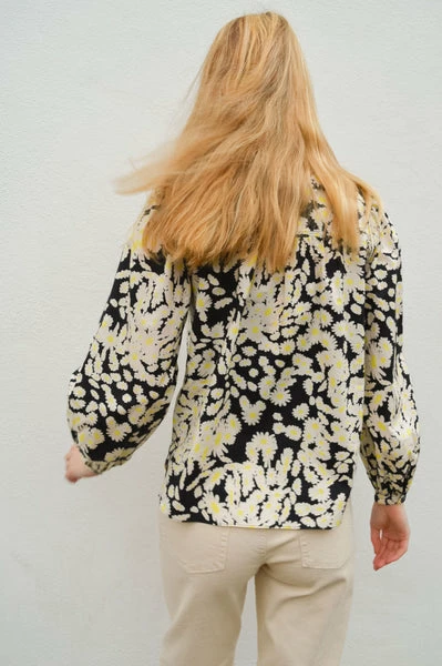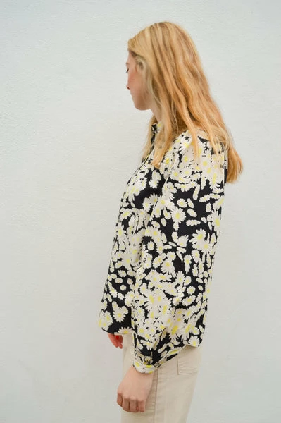 Second Female shirt with loose fit and short, rounded sleeves. The sleeves are big and has gatherings at the shoulder and by the narrow cuffs with button closure. The shirt har a classic collar and placket with visible buttons. At multiple places there are top stitches and by the shoulders there a nice, solid colored pipings.Loose fitted shirtBig, long sleevesClassic collar and button closureTop stitches and pipings 100% Organic cotton Wash – 30°C (Gentle Process) Bleach – Do not bleach Tumble Dry – Normal (low heat) Ironing – Low Dryclean – Any Solvent Except Trichloroethylene Shrinkage up to 5% Wash inside out Wash dark colours separately