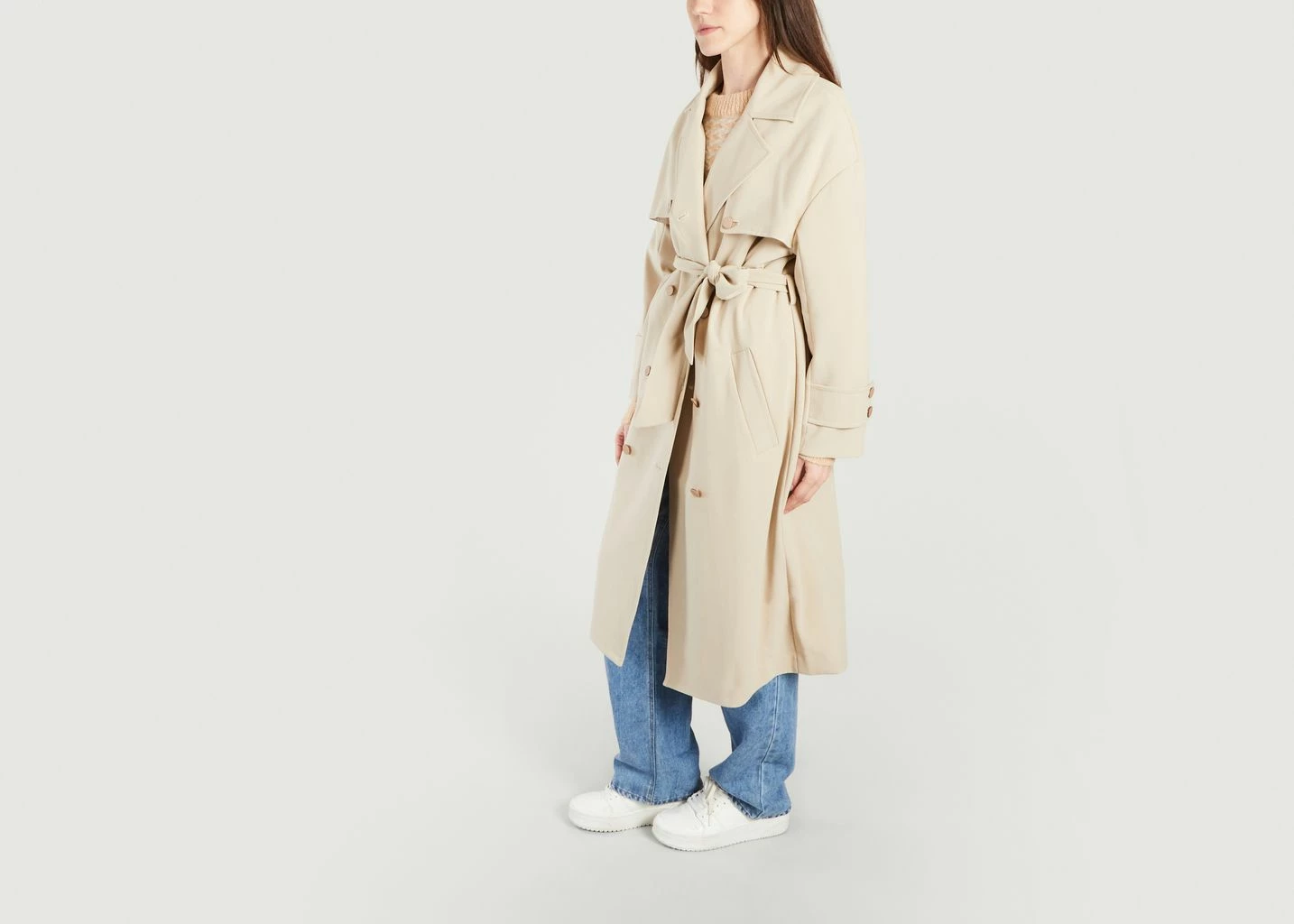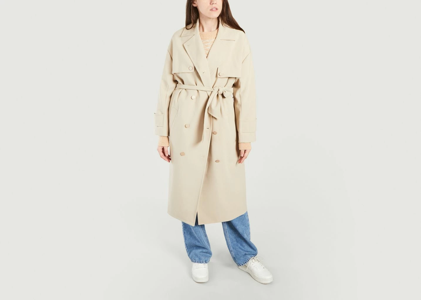 Viscose and polyester trench coat. It has a classic cut, a belted waist, a double-breasted closure on the front. Decorative wrist straps, front pockets and back vent. Adopt this trendy trench coat full of character to be sure to have effortless style in any outfit. Heeled shoes will go perfectly with this elegant trench coat.