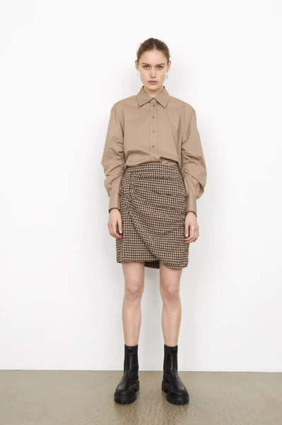 Skirt by SECOND FEMALE Hulana Second Female checked, feminine skirt made in a cotton mix, crepe quality. The skirt has waistband and zipper closure at back. It has unique, gathering detail at front and mini length. Zipper closure Gathering detail Checked pattern Crepe, cotton mix Composition 58% Cotton 40% Viscose 2% Elasthane More info or can’t find what your are looking for? Contact us Can’t decide? Ask your friends!
