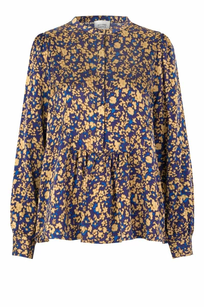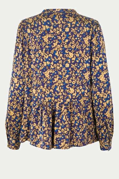 This is a beautiful printed blouse in a drapey viscose quality. The blouse has a classic collar stand, hidden placket and cutline with gatherings at the front. 100% Viscose