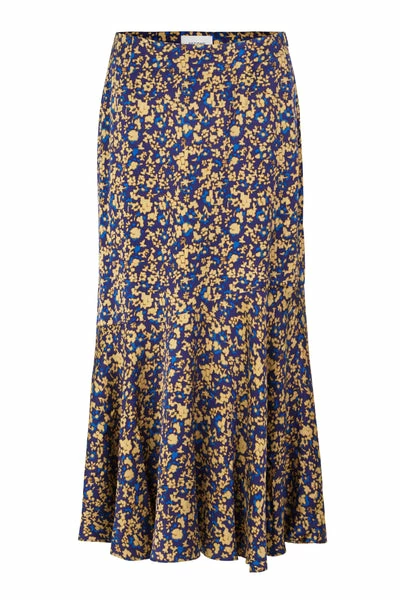 This is a beautiful printed skirt in a drapey viscose quality. The skirt has a mermaid shape with fitted upper and a lovely flowing lower. 100% Viscose