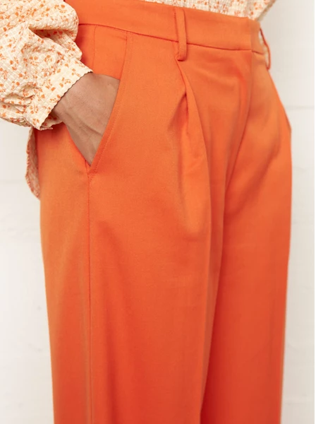Trousers by SECOND FEMALE Kaleem classic Trousers Second Female trousers with straight to wide legs. The pants have a waistband, hook & eye and zipper opening at front. It has a pleated front, creaseline details and paspoil pockets at the back. On the waistband there are belt loops. Trousers with straight to wide legs Waistband with belt loops Hook & eye and zipper opening Pockets on front and back 65% Polyester 25% Viscose 7% Wool 3% Elasthane More info or can’t find what your are looking for? Contact us Can’t decide? Ask your friends!