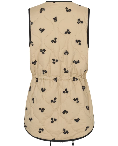 Second Female Wisteria Quilt Waistcoat – Curry A light beige brown quilted gilet with contrasting black piping and a black floral print. It features a drawstring tie to pull in at the waist, side slits, front pockets and popper fastenings covering the full length zip running down the front. 100% Organic Cotton Machine wash at 30 Wash inside out Shrinkage up to 5% XS – UK8, S – UK10, M – UK12, L – UK14 Second Female is generous sizing, we recommend you size down if inbetween sizes.