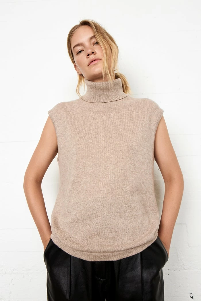 Ydun Knit Vest is a knitted vest in 100% recycled cashmere. The vest has a straight fit and regular length, and the neck is a high turtleneck. The knit is a part of Second Female’s Sustainable Choice. 100% Recycled Cashmere. Hand wash. Bleach – Do not bleach. Tumble Dry – Do not tumble dry. Ironing – Low. Dryclean – No dry clean. Dry flat. Shrinkage up to 5%